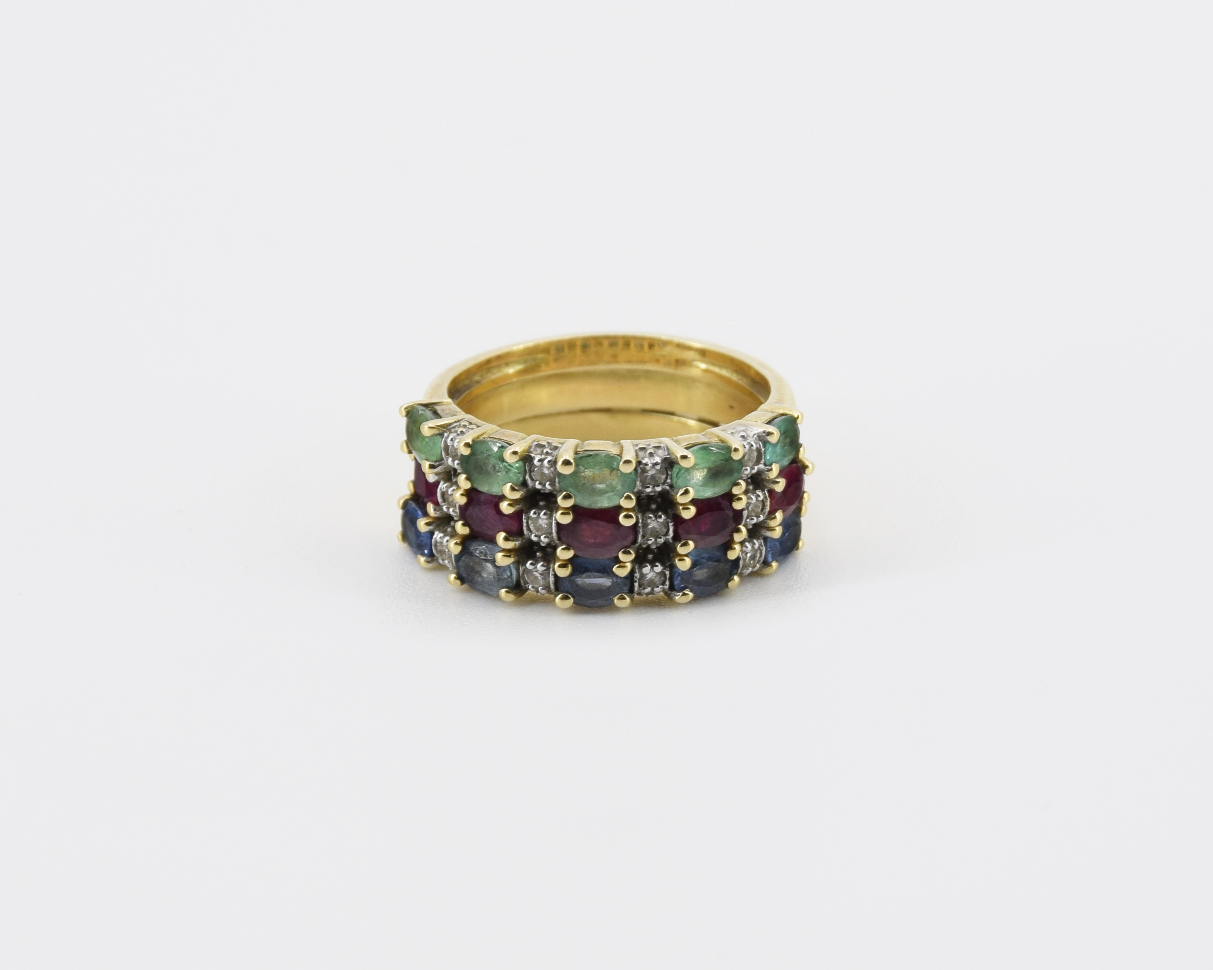 5 szt. szafirów + 5 szt. rubinów + 5 szt. szmaragdów oraz 12 szt diamentów;