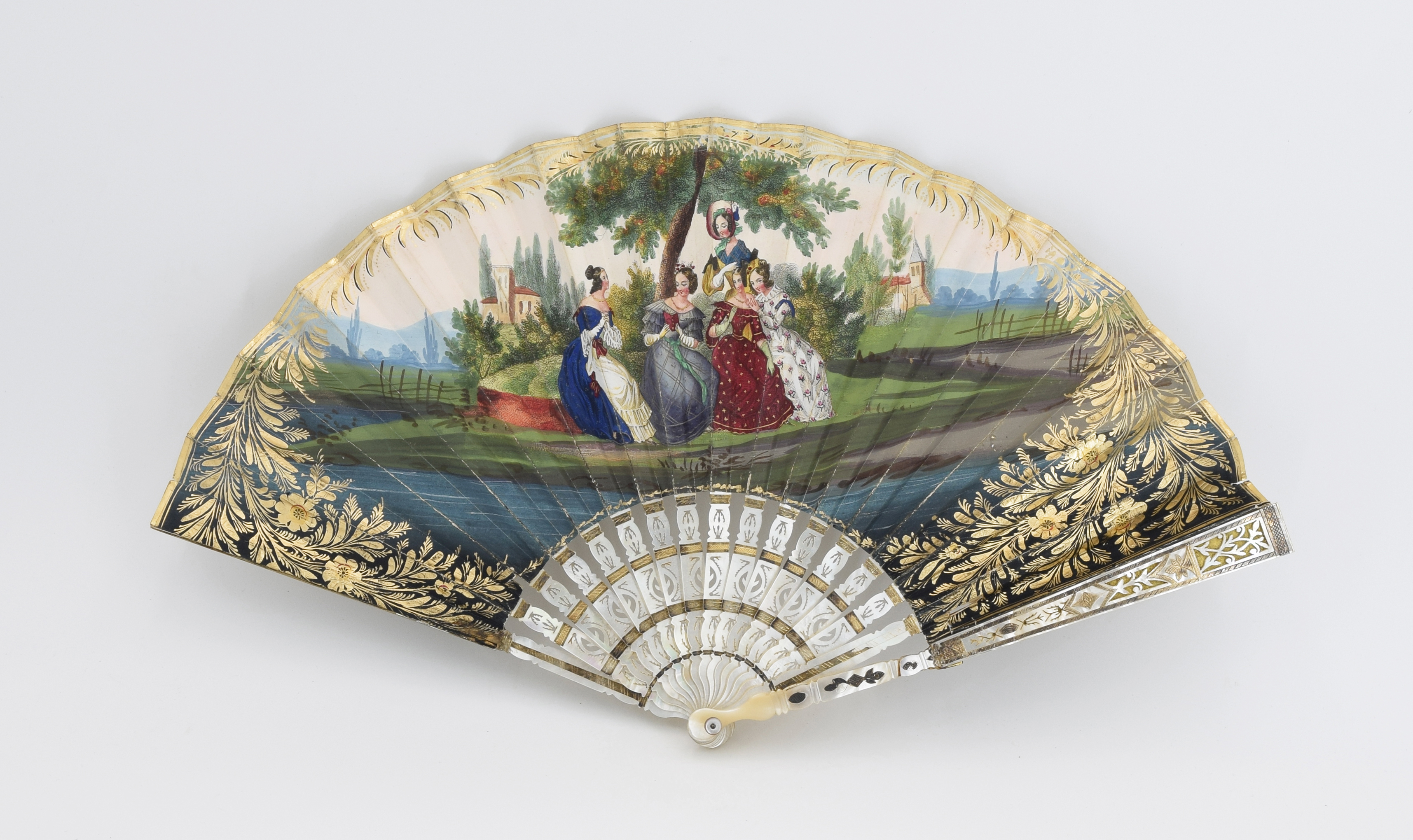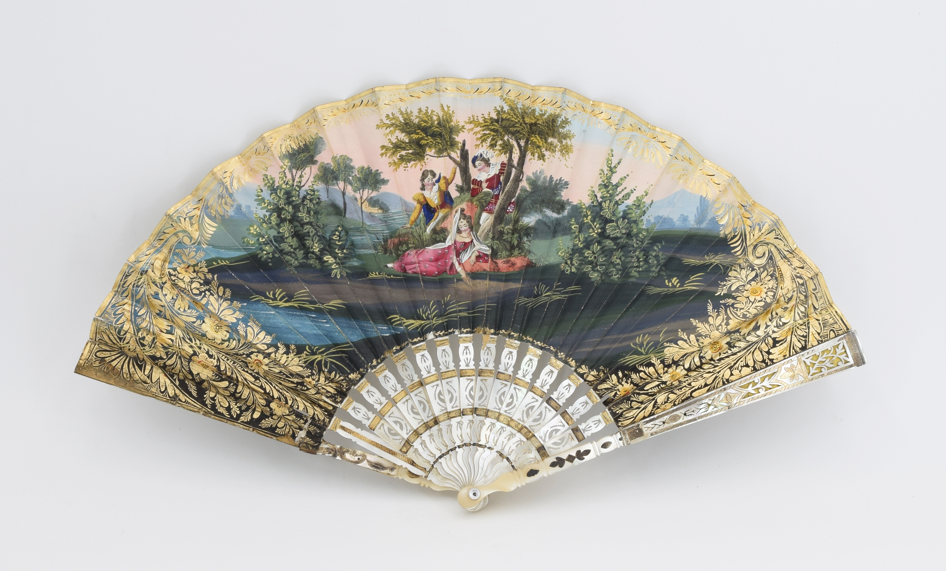 Wachlarz ze scenkami rodzajowymi w pejzażu