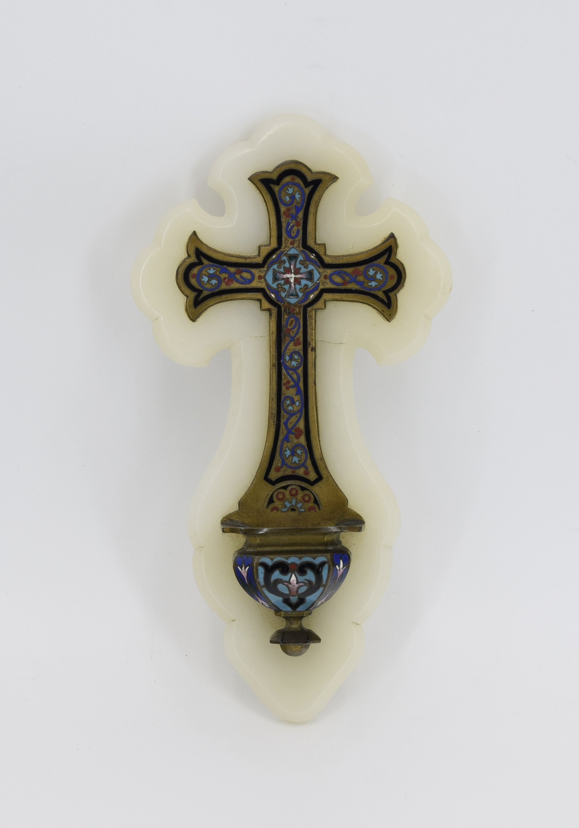 onyks, mosiądz, mosiądz złocony, emalia komórkowa wielobarwna; farby emaliowe; 21 x 11 cm.