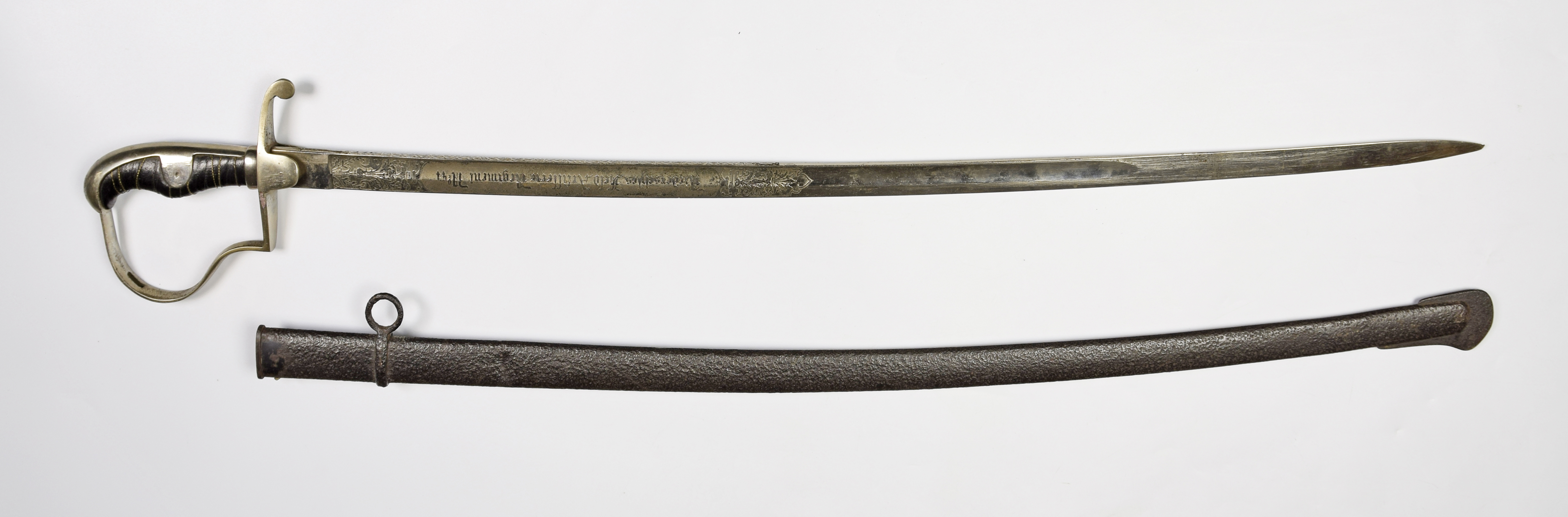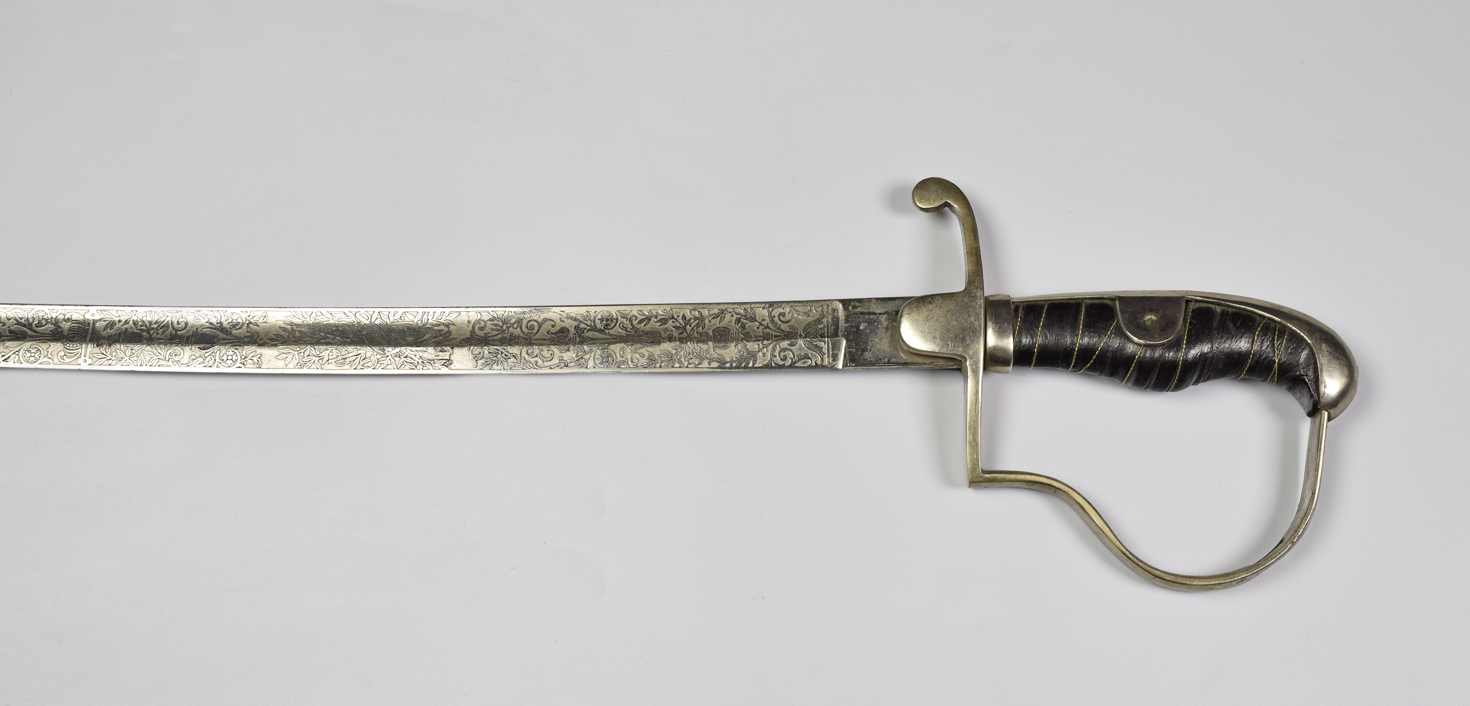 stal, mosiądz, drewno, skóra; dł. całk. w pochwie 97 cm.