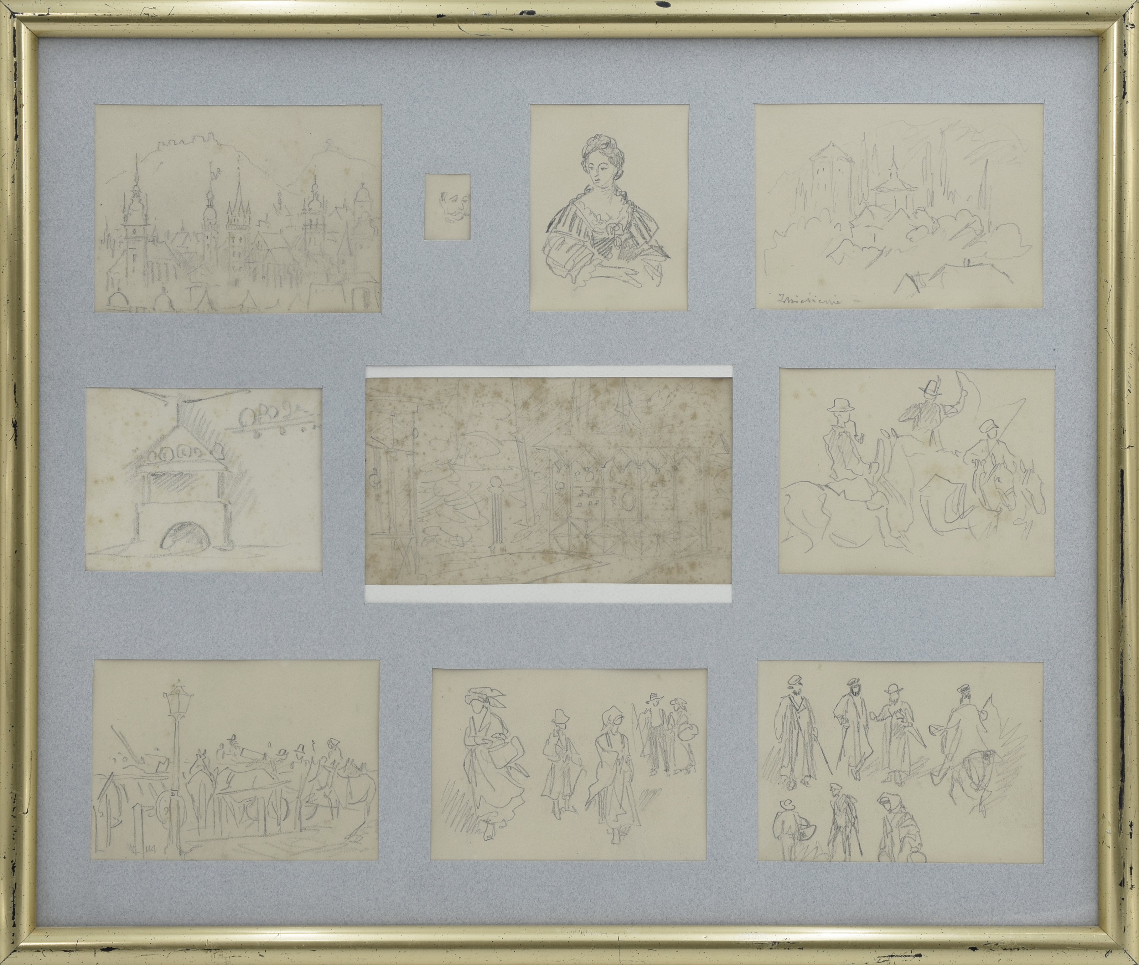14 szt. rysunków ołówkiem na papierze, we wspólnej oprawie;