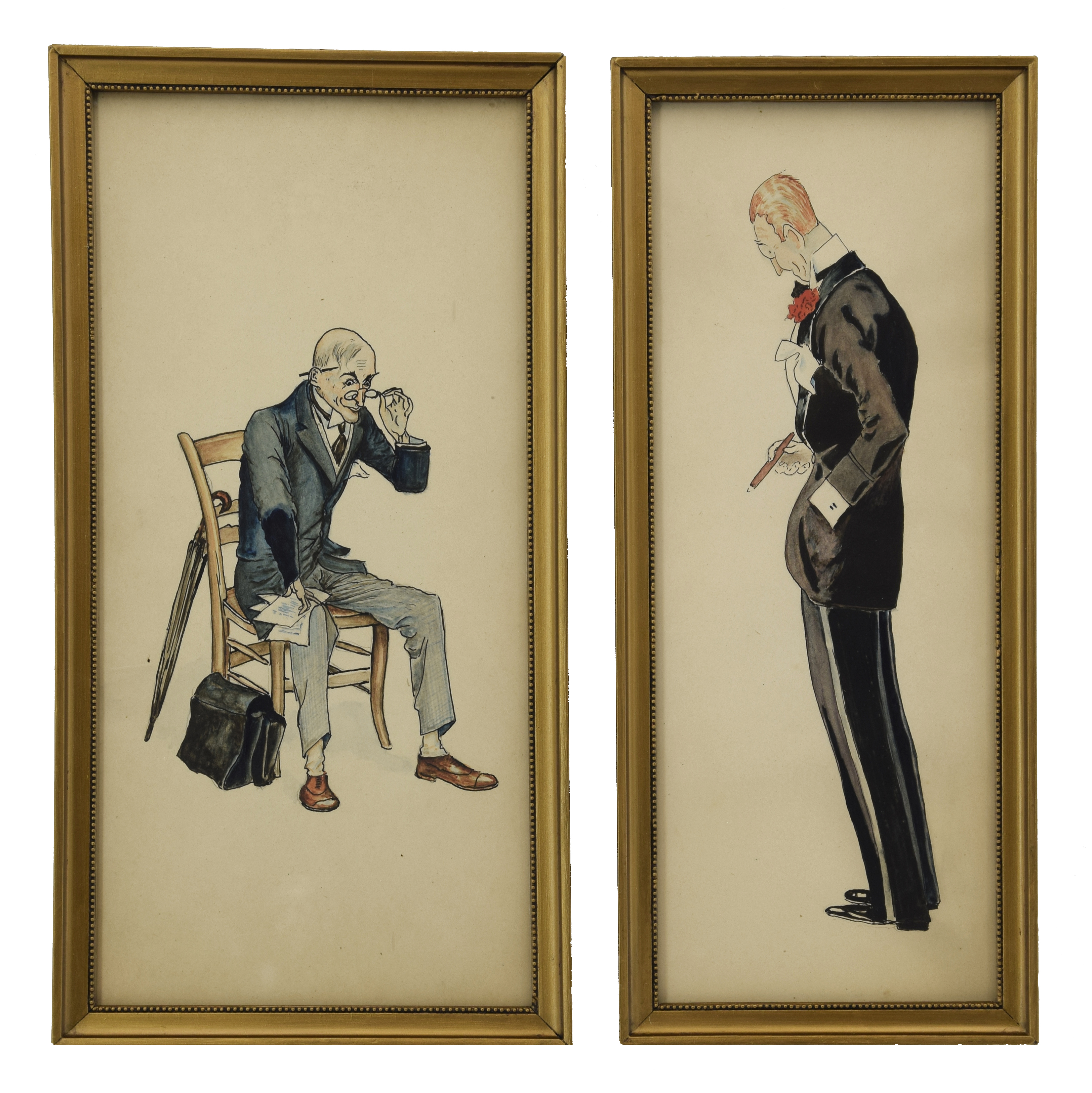 2. Mężczyzna siedzący na krześle - ołówek, tusz, akwarela, papier; 27,5 x 13 cm.