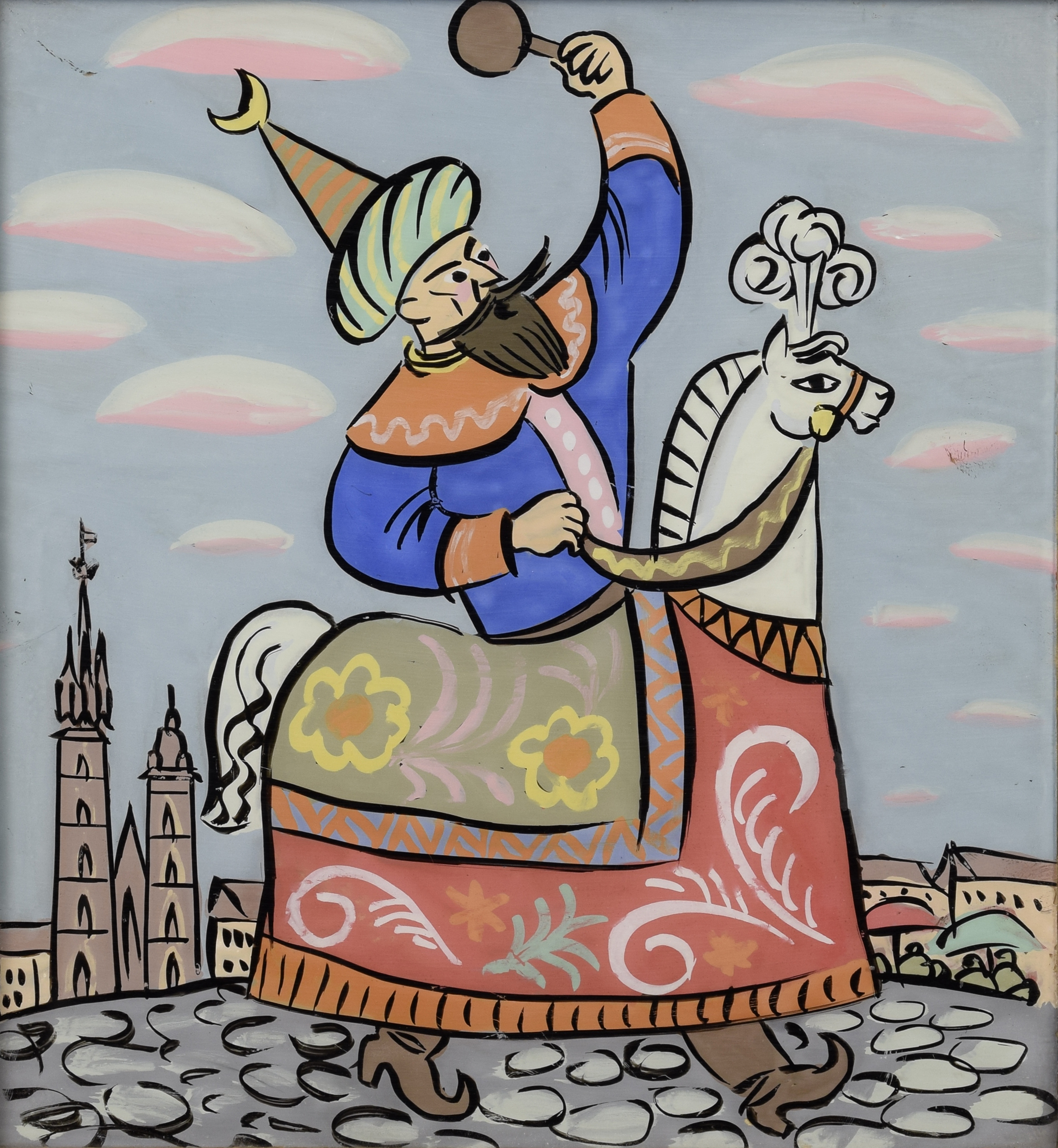 2. Lajkonik - malowidło na szkle, 24 x 22,7 cm;