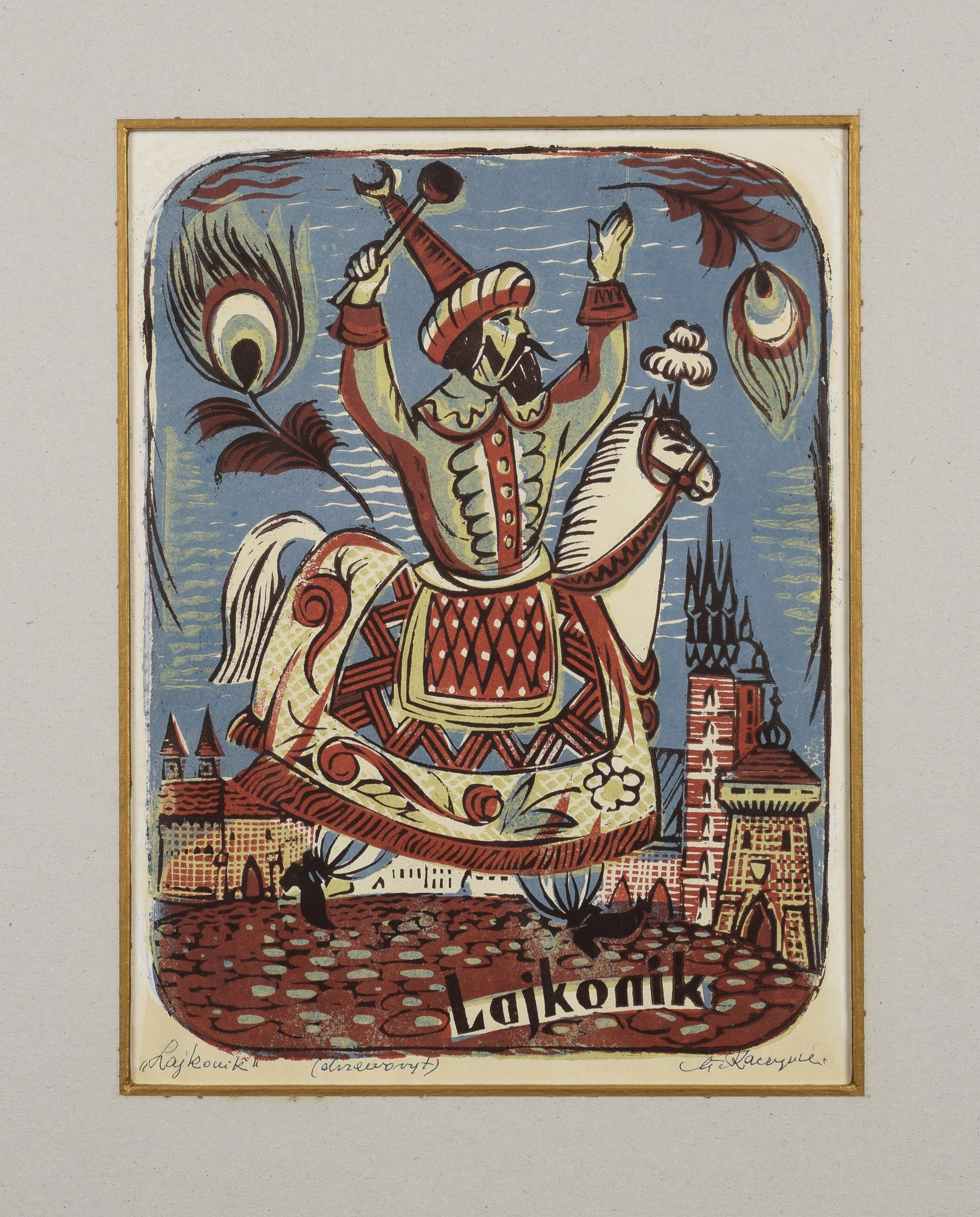 1. Lajkonik - drzeworyt barwny, papier; 27 x 20,5 cm (w świetle oprawy);