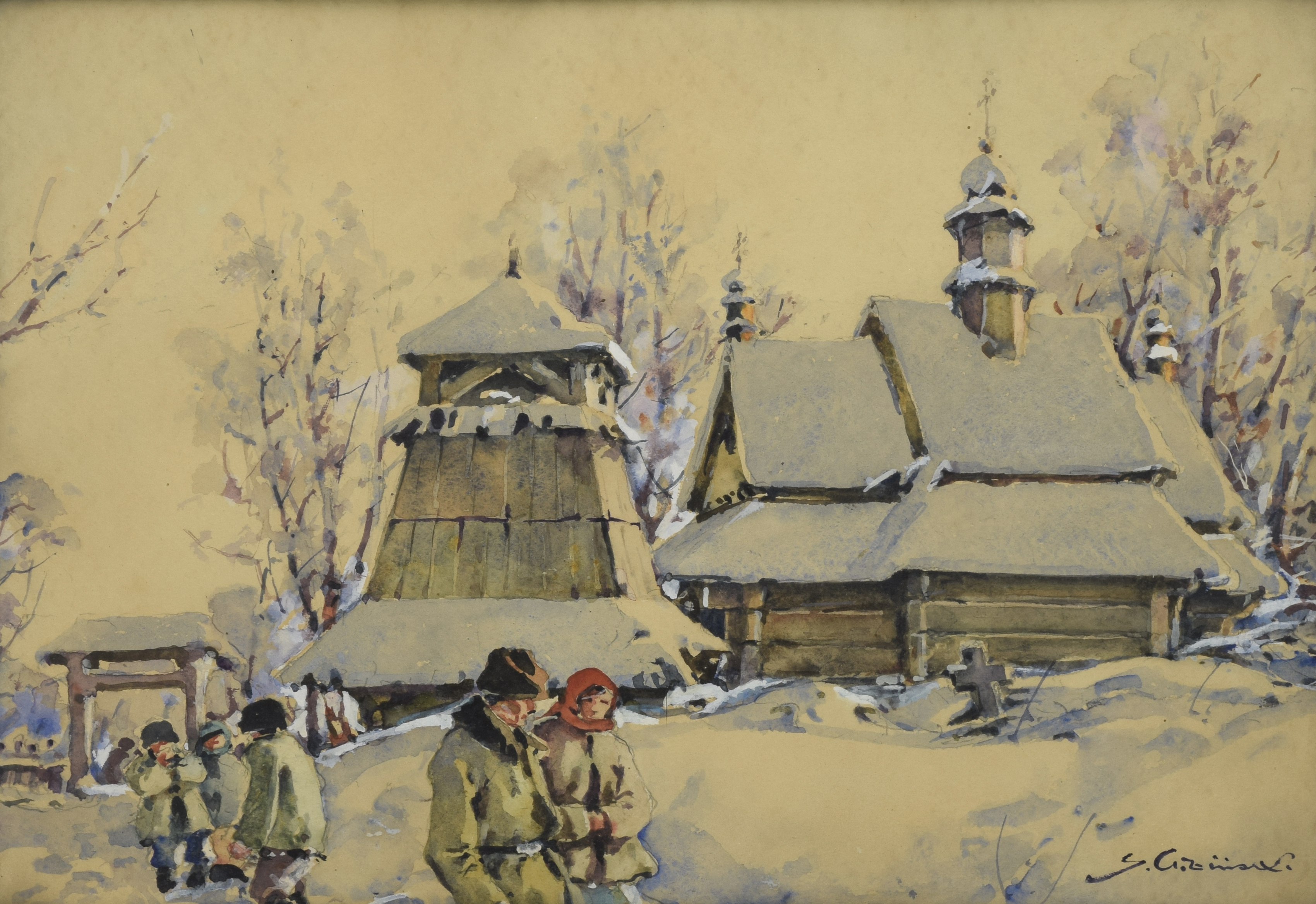 akwarela na podrysowaniu ołówkiem, karton; 33,5 x 48,5 cm (w świetle oprawy);