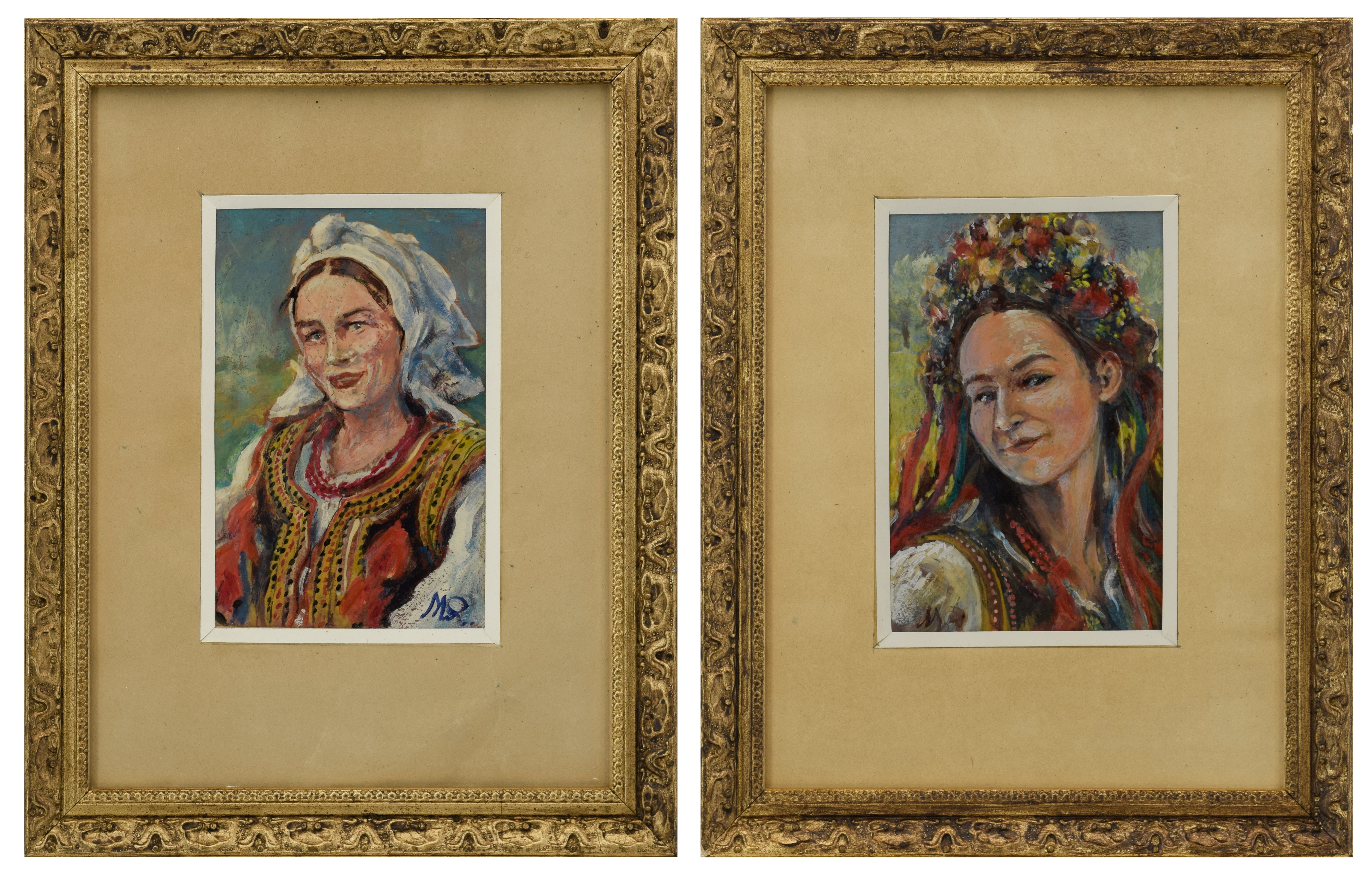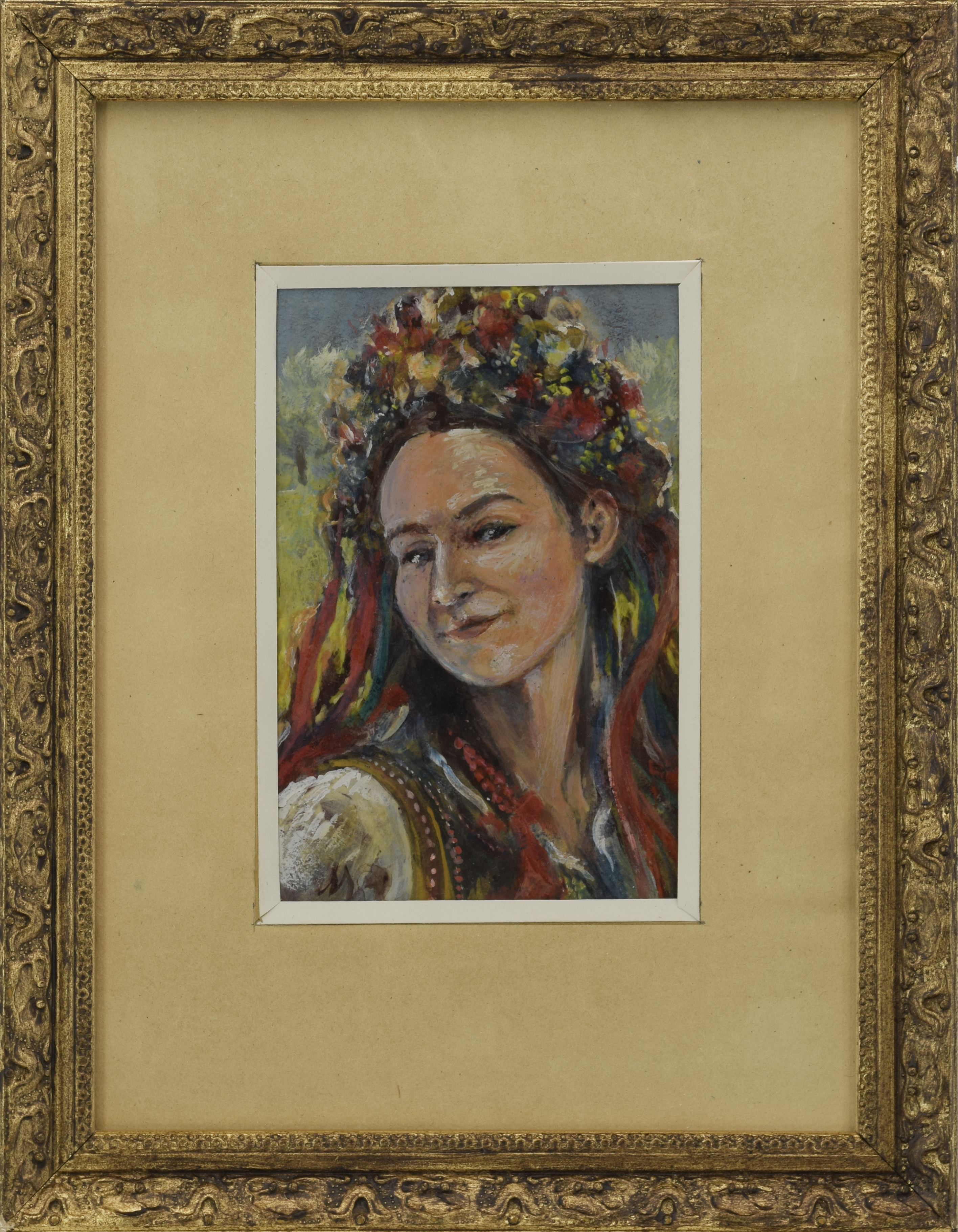 1. Krakowianka z wiankiem - olej, tektura, 14 x 9 cm (w świetle oprawy);