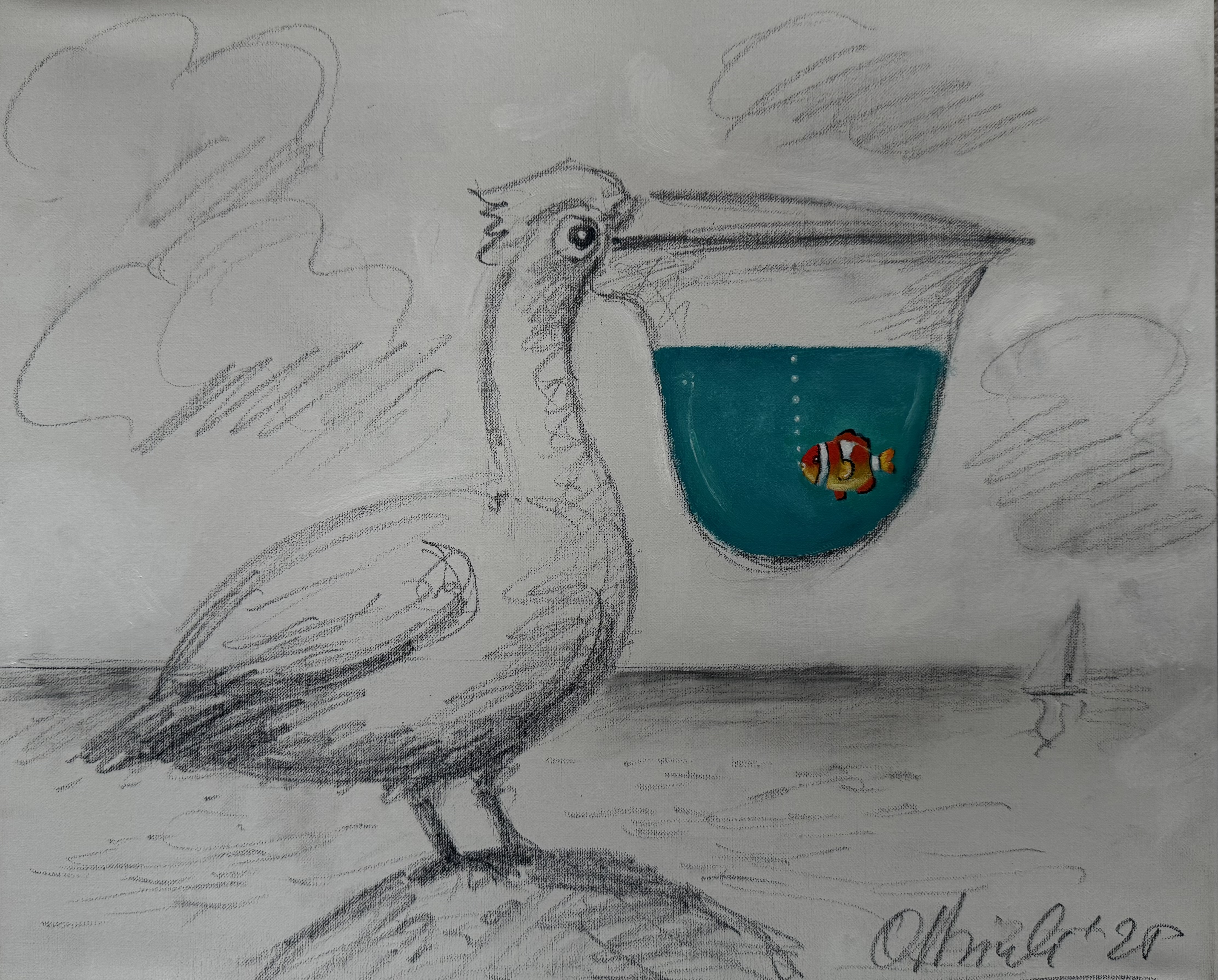 akryl, ołówek, płótno, 39 x 47 cm.;