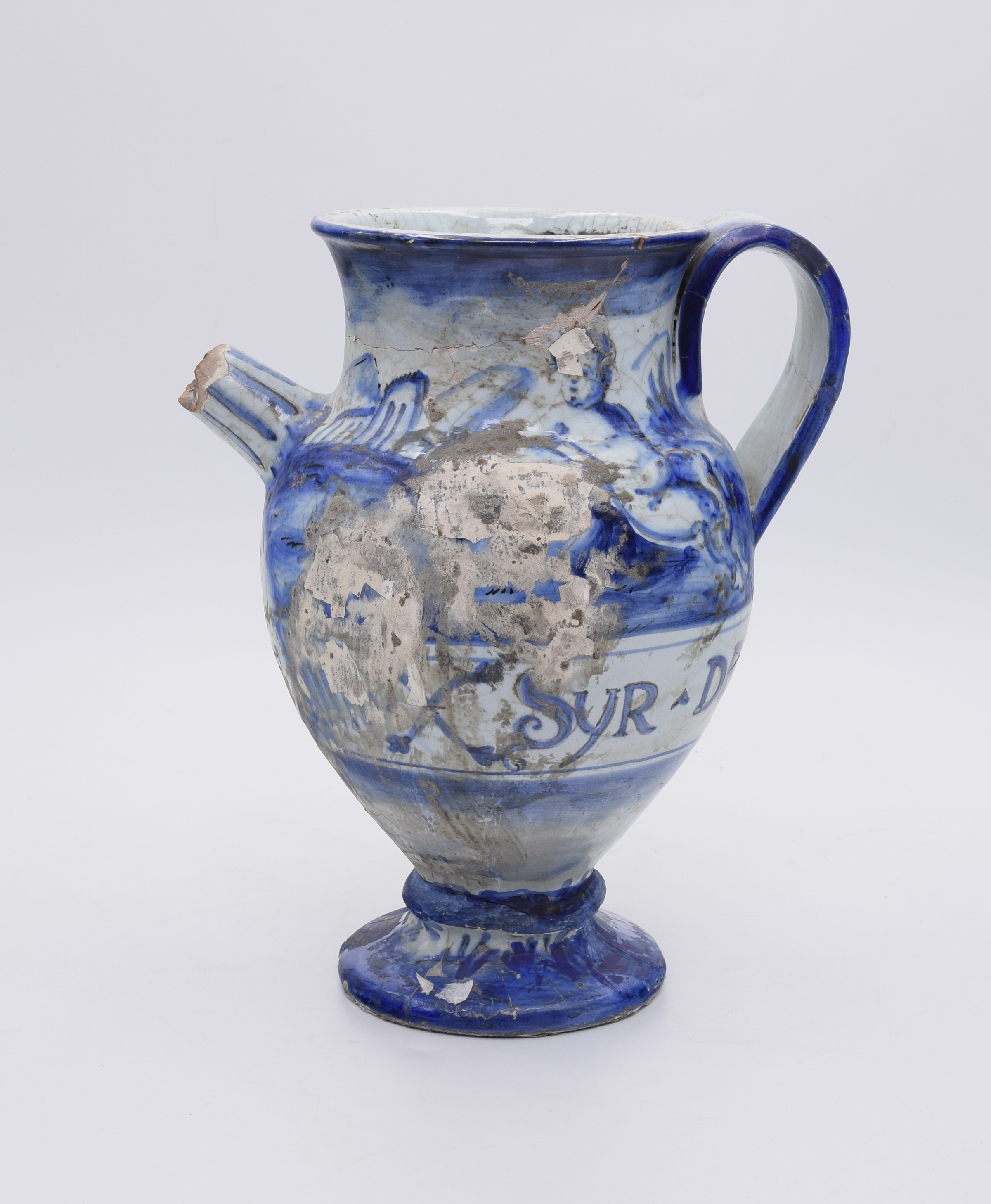 Dzban z napisem „Syr DE ACIDO CITR” w manierze renesansowej