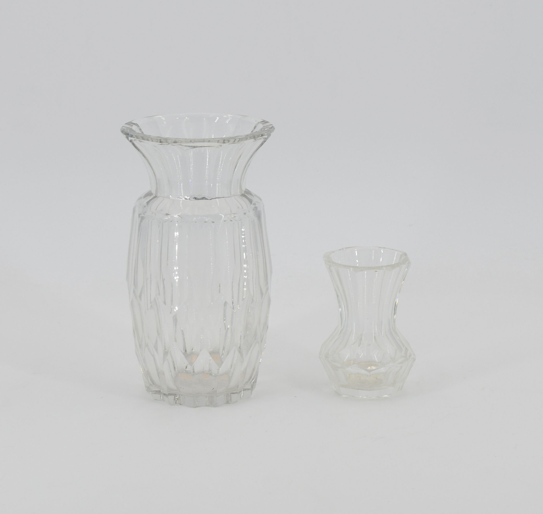 szkło bezbarwne, szlifowane; wys.: 43 cm i 8,8 cm.