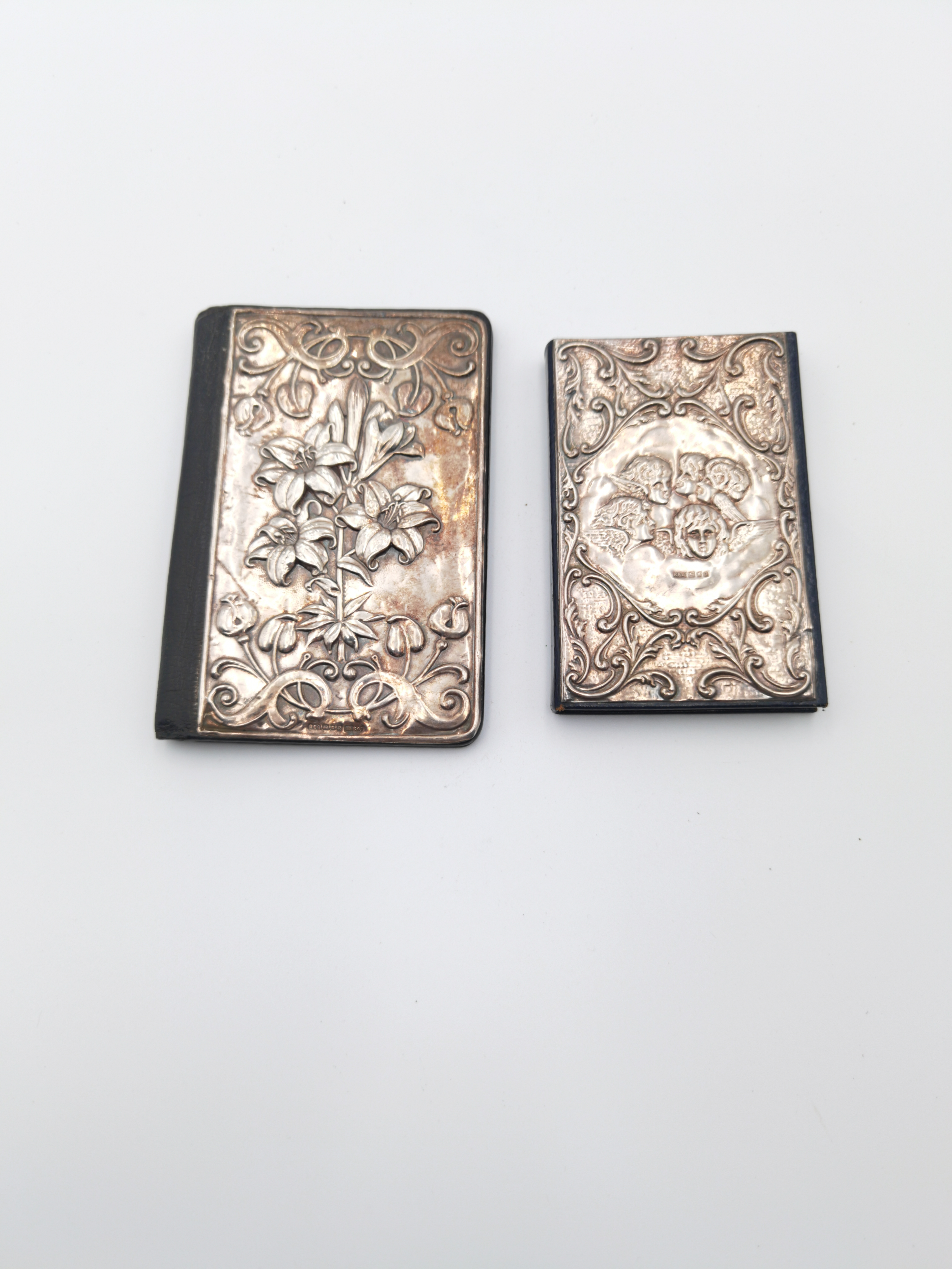 srebro próby 925, skóra cielęca; notes wym.: 12 x 7,5 cm, etui wym.: 14,2 x 9,7 cm;