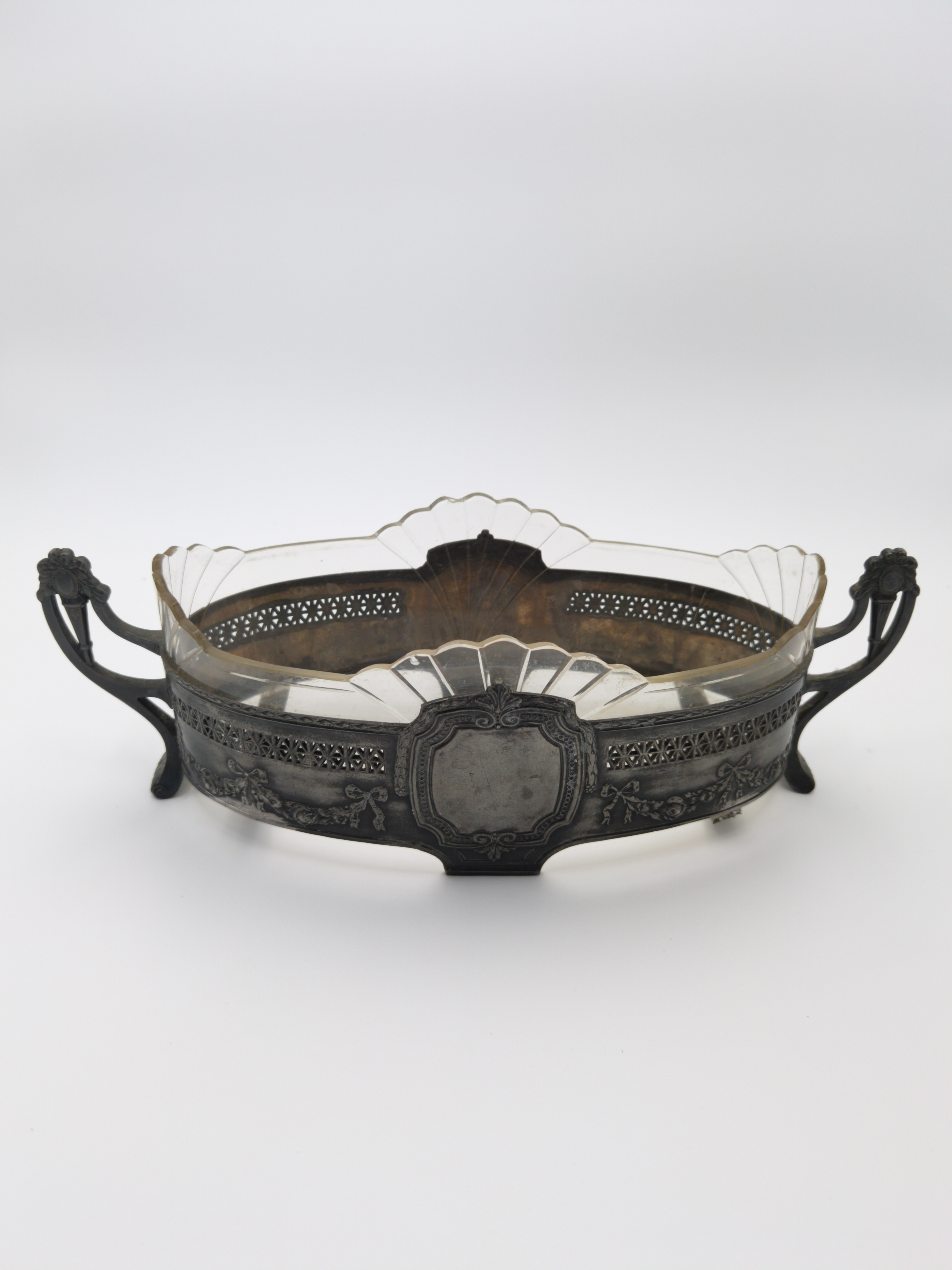 cyna, wkład szklany; wym. całkowity: 11,5 x 35 x 13 cm.