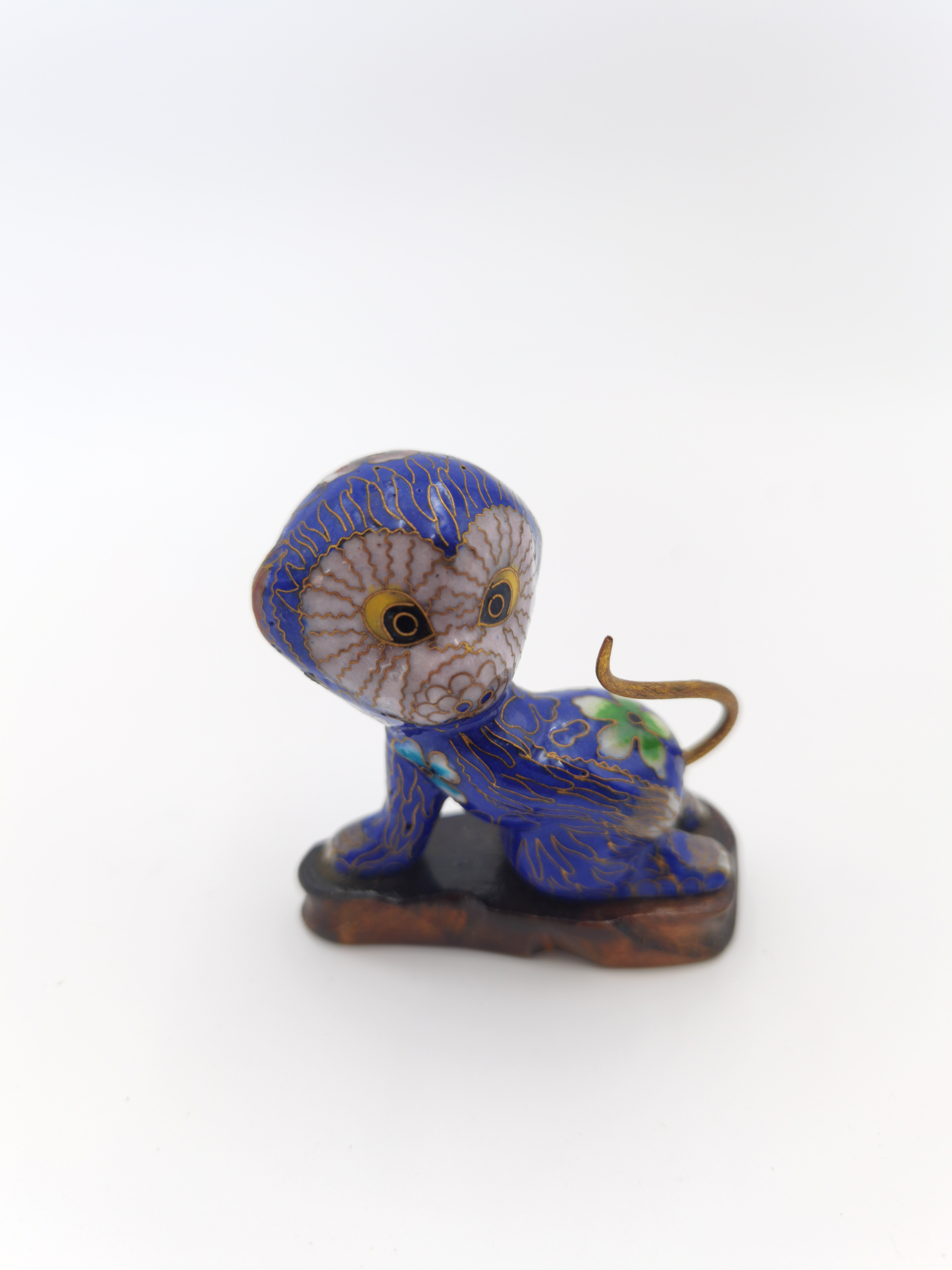 emalia komórkowa, podstawa drewniana; 7 x 6,5 x 3 cm.
