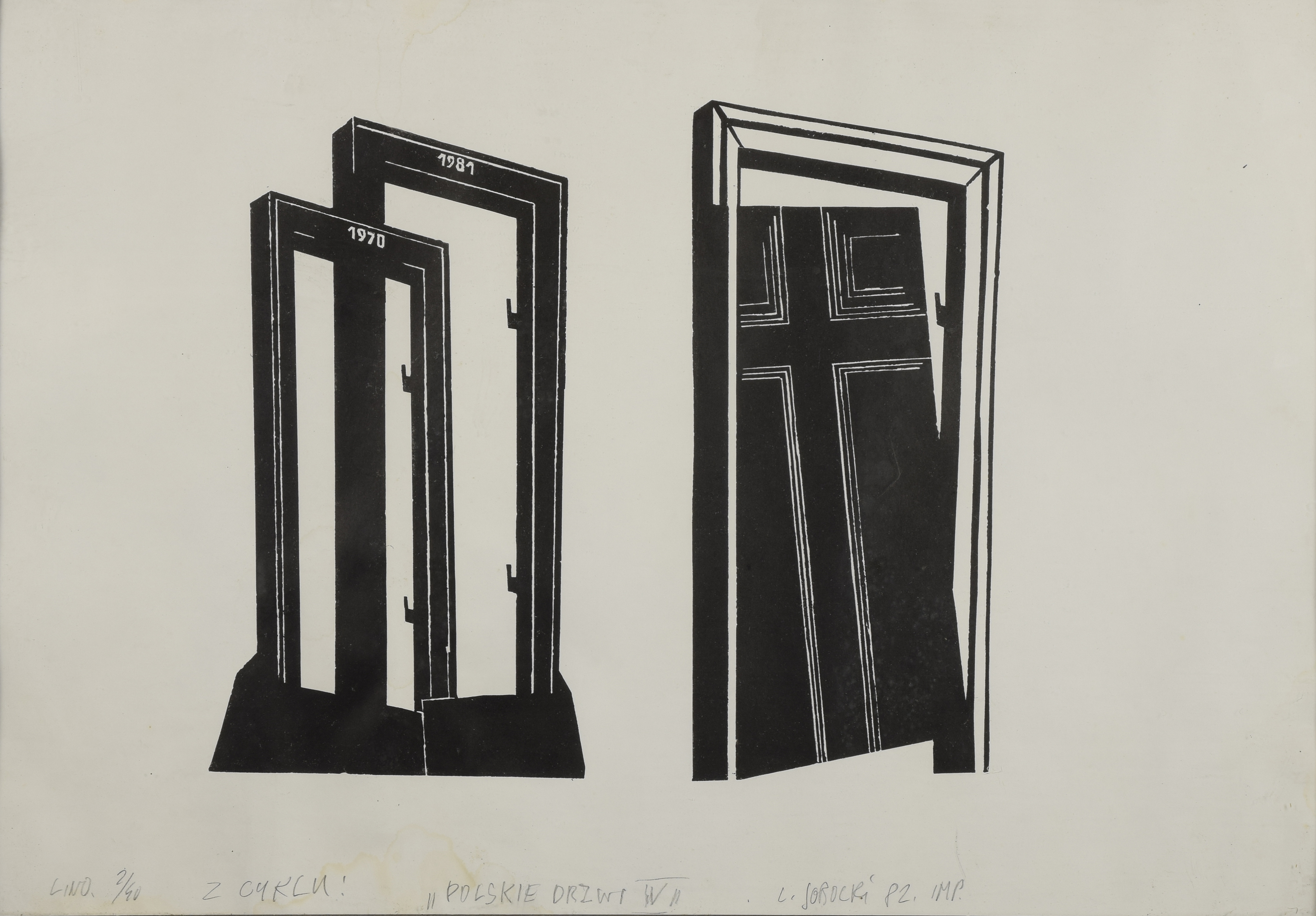 u dołu opis autorski wraz z sygnaturą: LINO. 2/40 Z CYKLU: "POLSKIE DRZWI IV" L. SOBOCKI 82.