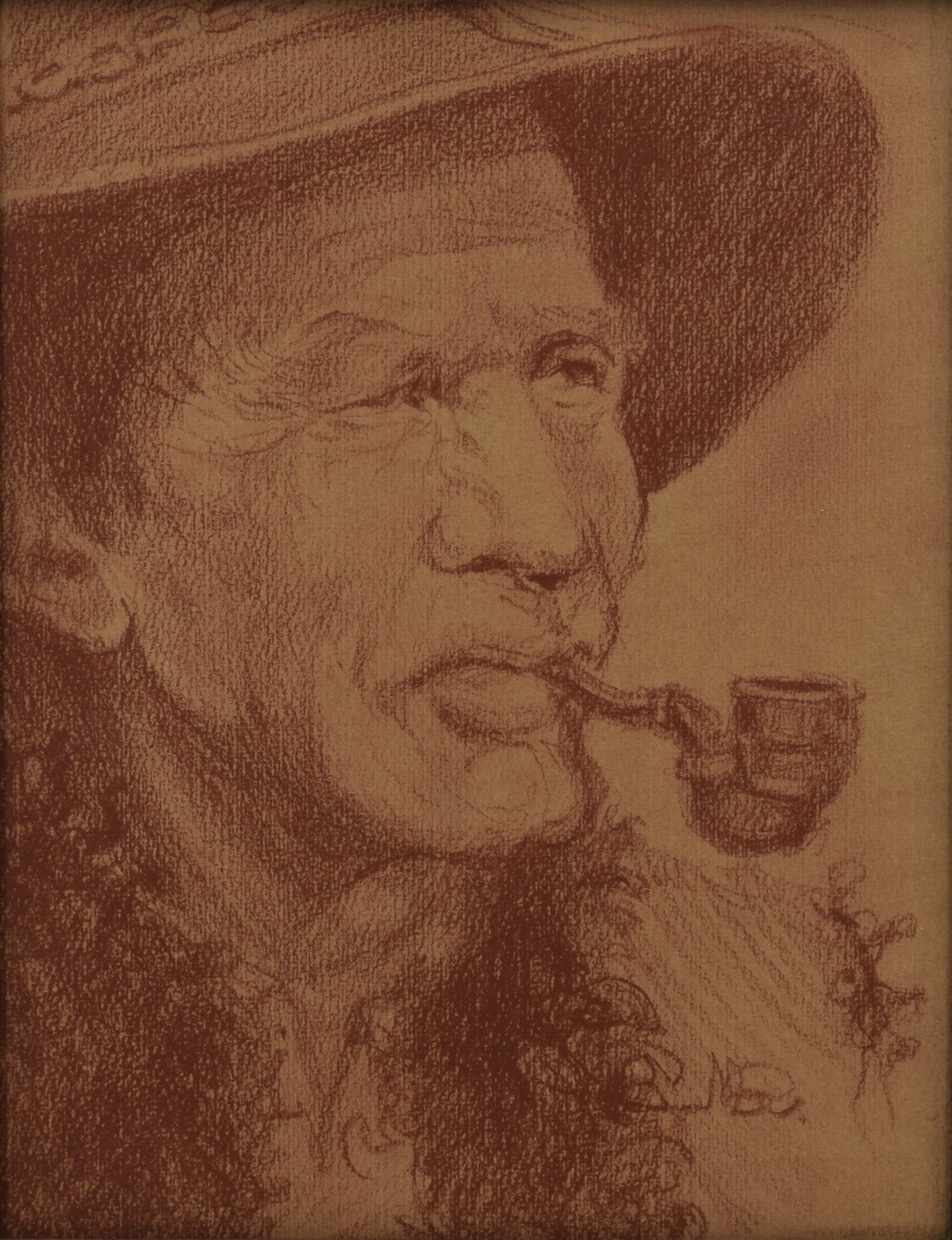 2. Góral z fajką - sangwina, brązowy papier; 24,3 x 29,.2 cm (w świetle oprawy)