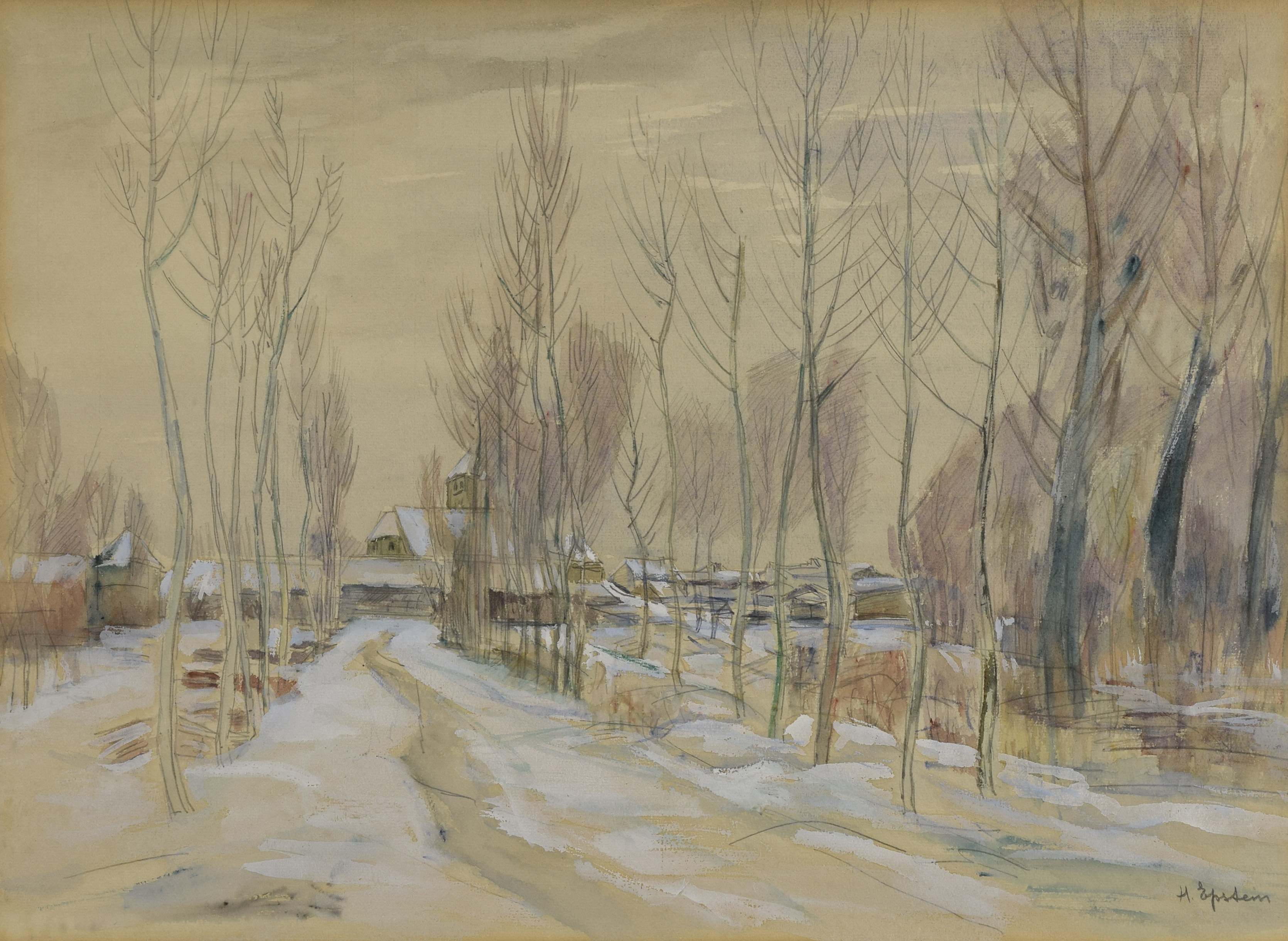 ołówek, akwarela, gwasz, papier; 39,5 x 55 cm (w świetle oprawy);
