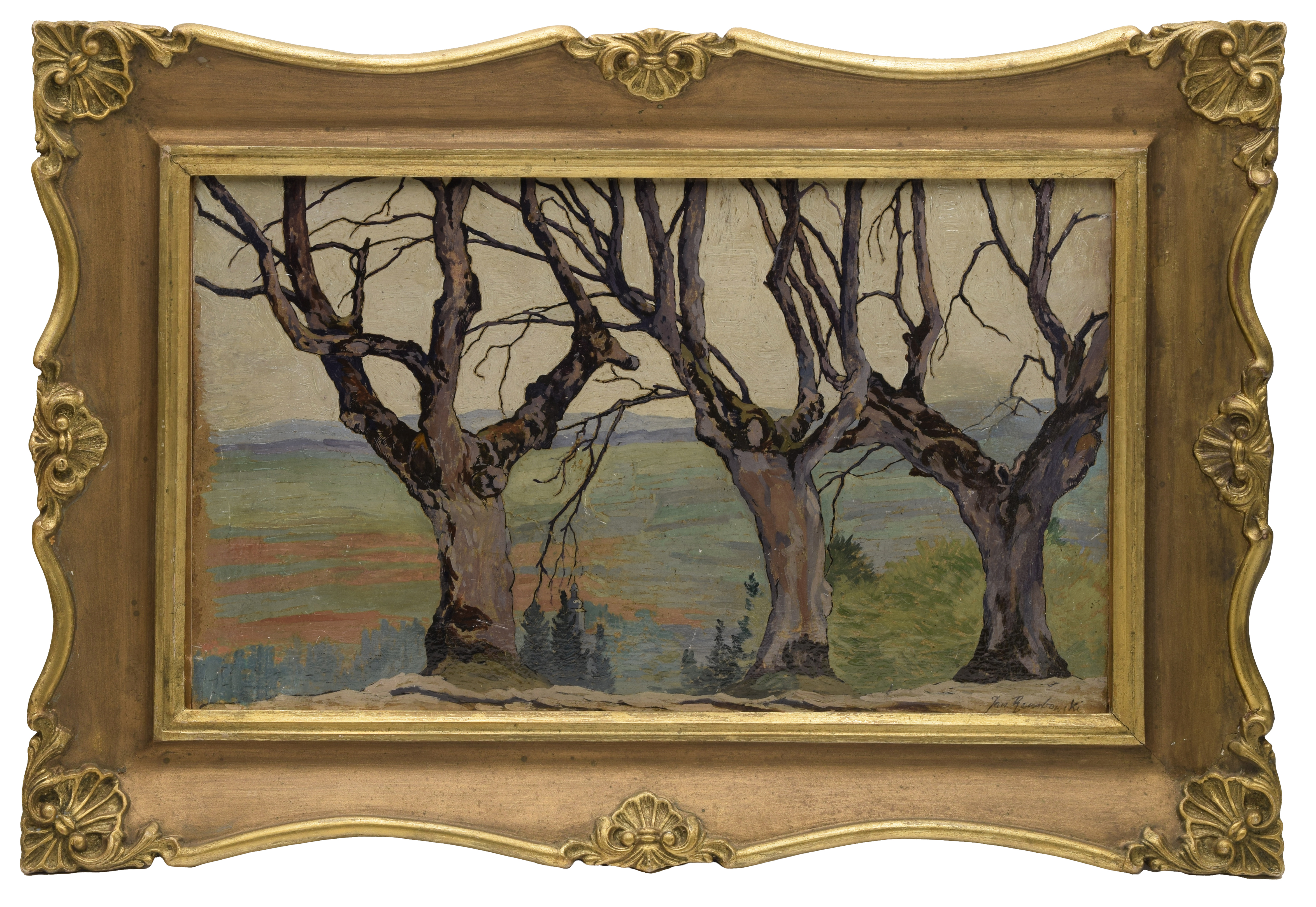 olej, tektura; 28,5 x 49,5 cm (w świetle oprawy);