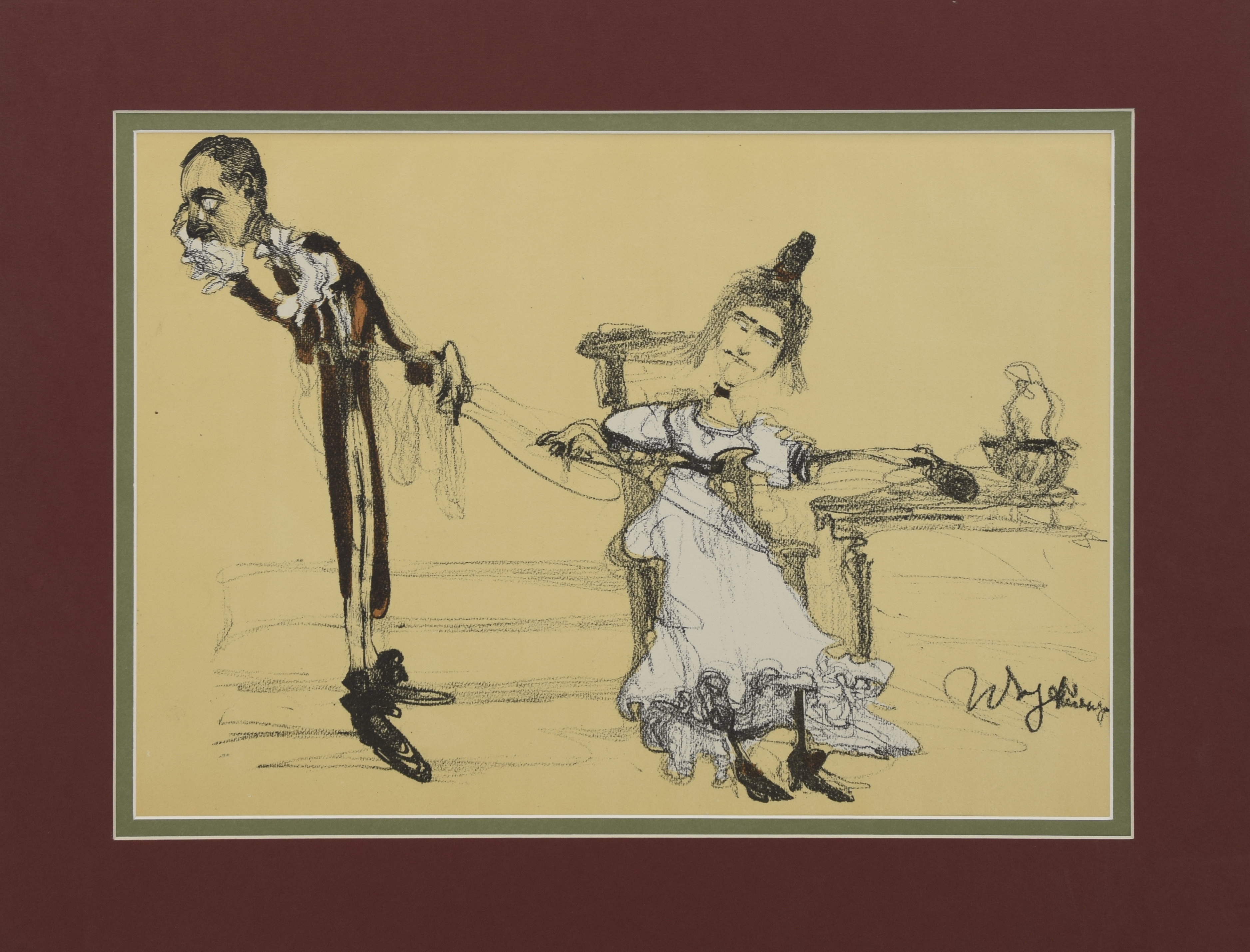 Jadwiga Mrozowska i Andrzej Milewski jako Albin i Klara w Ślubach Panieńskich, (z teki Melpomeny), 1904