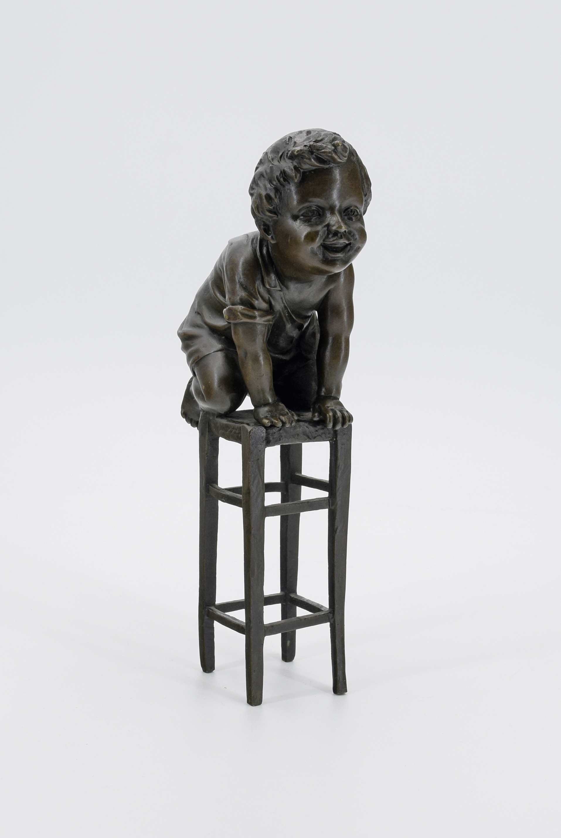brąz; wys. 21 cm, sygn. na spodzie stołka: „Juan Clara” oraz znak gwarancyjny odlewni w kole;