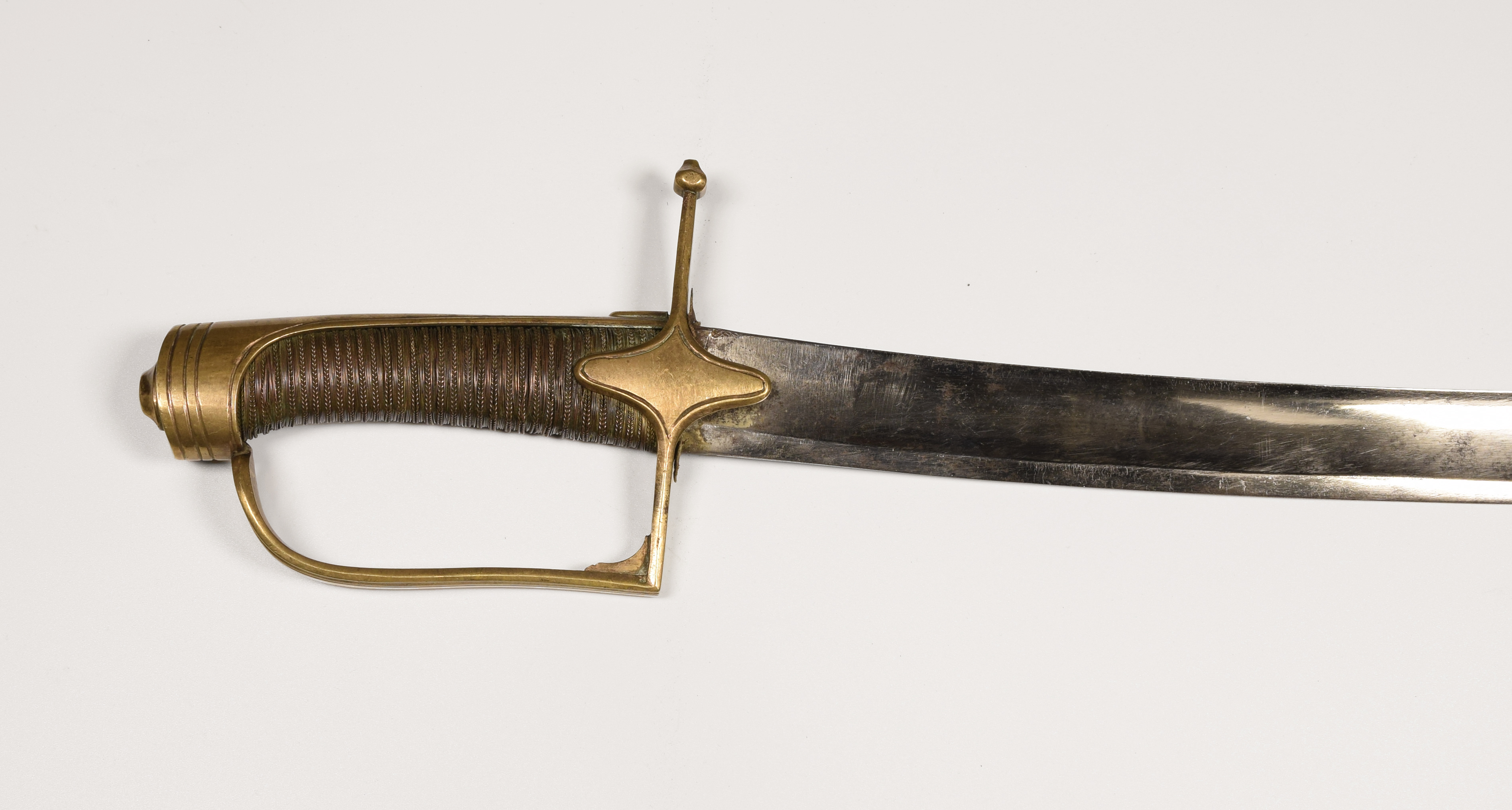 stal, mosiądz, drewno, skóra; dł. 103 cm; dł. całk. w pochwie 104,5 cm;