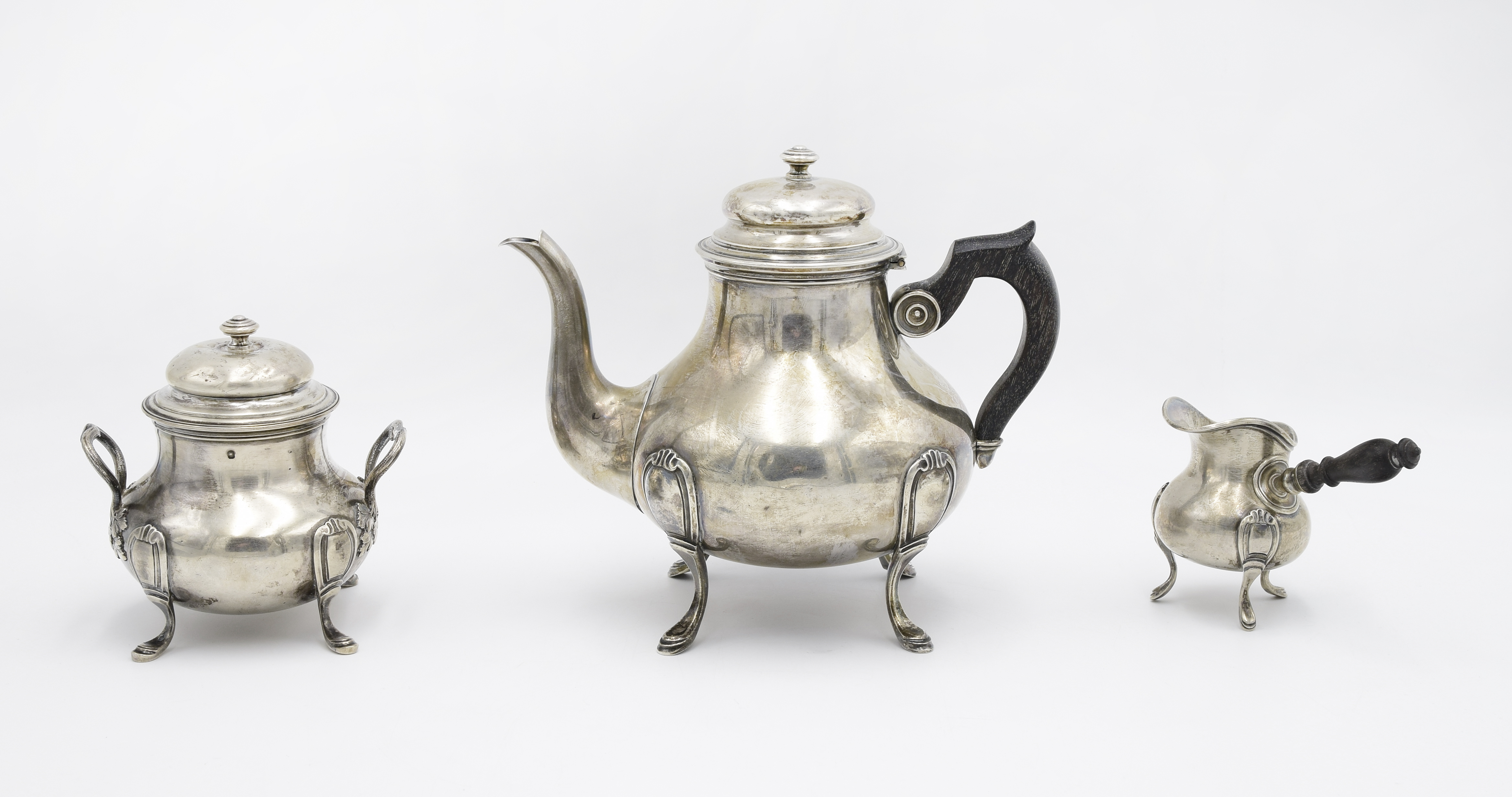 srebro próby 1(950) cechowane; imbryk,cukiernica i mlecznik; waga 921 g.