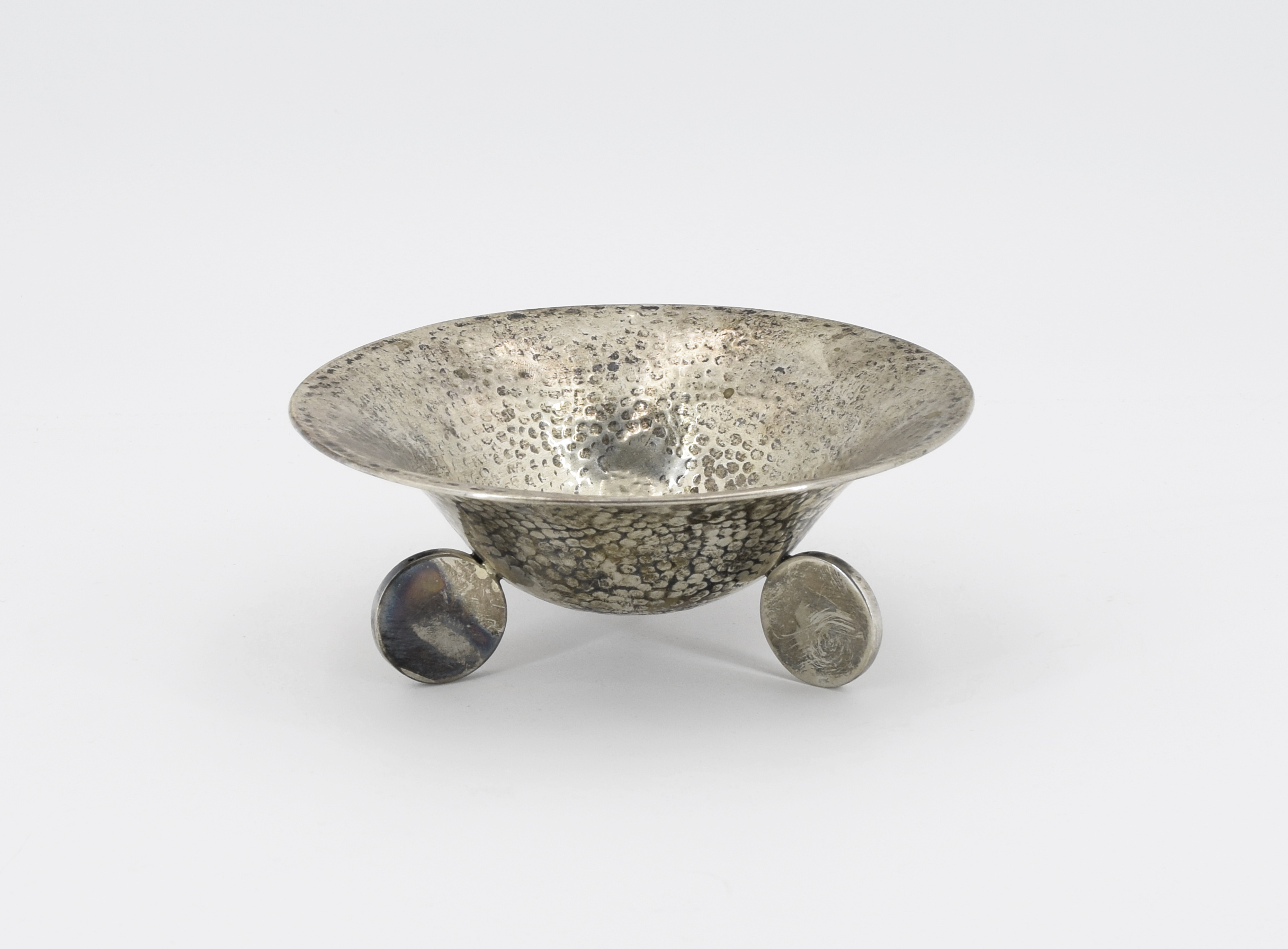 srebro próby 3 cechowane; wys. 7 cm, średnica 17 cm; waga 188 g.