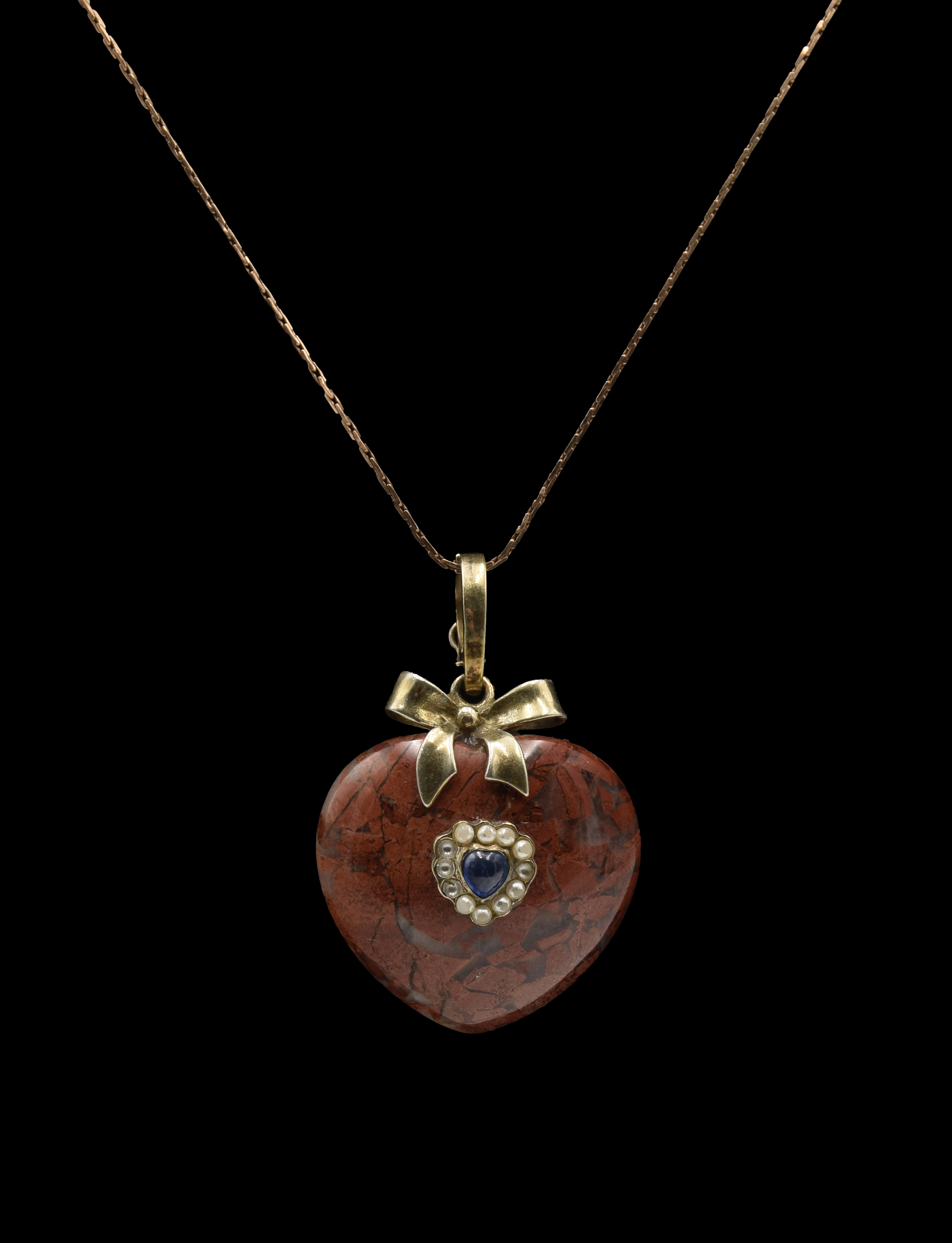 kompozycja w formie serca z agatem oraz dekoracją z szafirem i 8 szt. pereł;