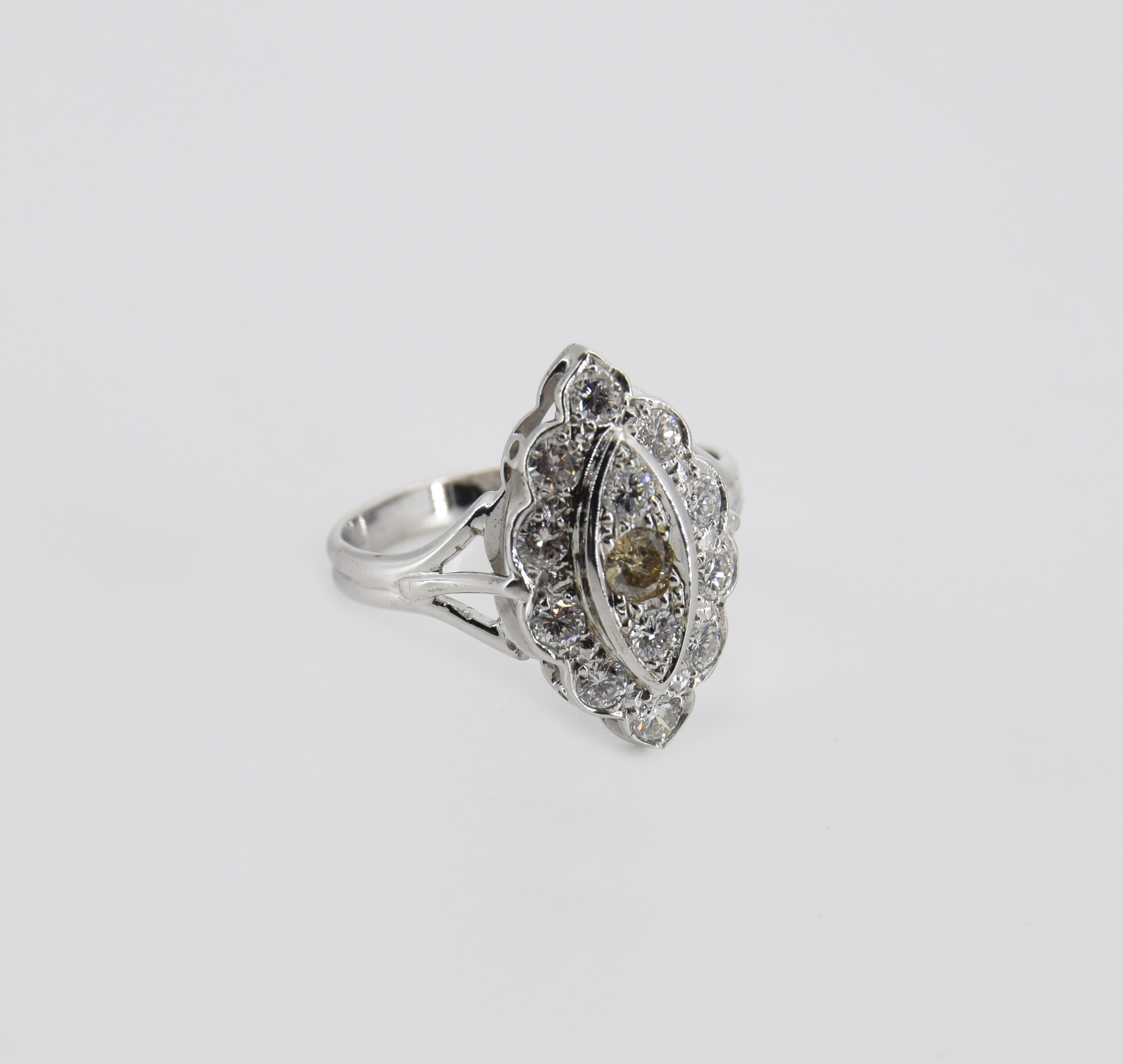 brylant o masie ok.0.15 ct (P1/K-M) oraz 12 szt. brylantów o masie łącznej ok. 0.70 ct;