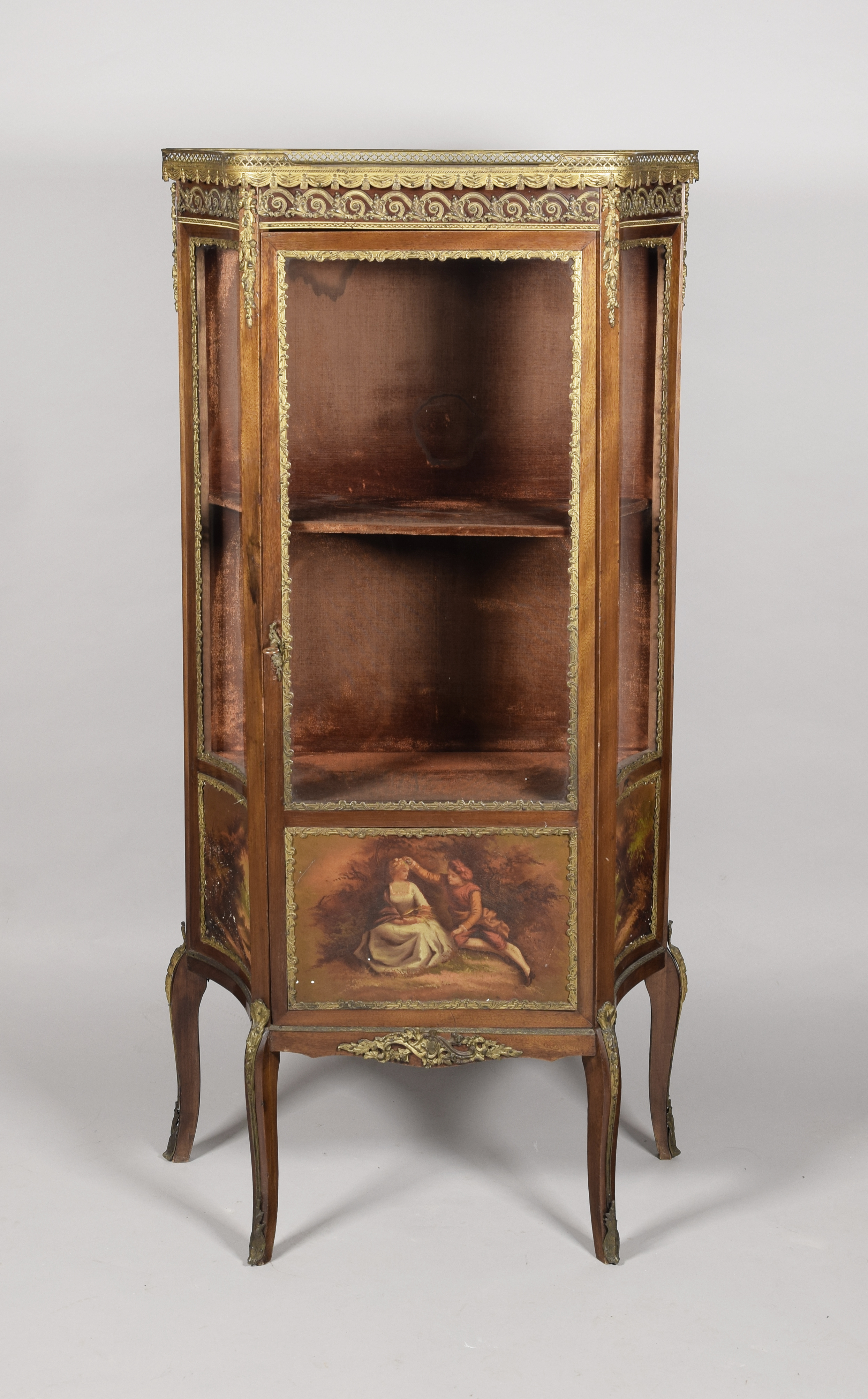 mahoń, mosiądz, szkło, 138,5 x 67,5 x 30 cm.