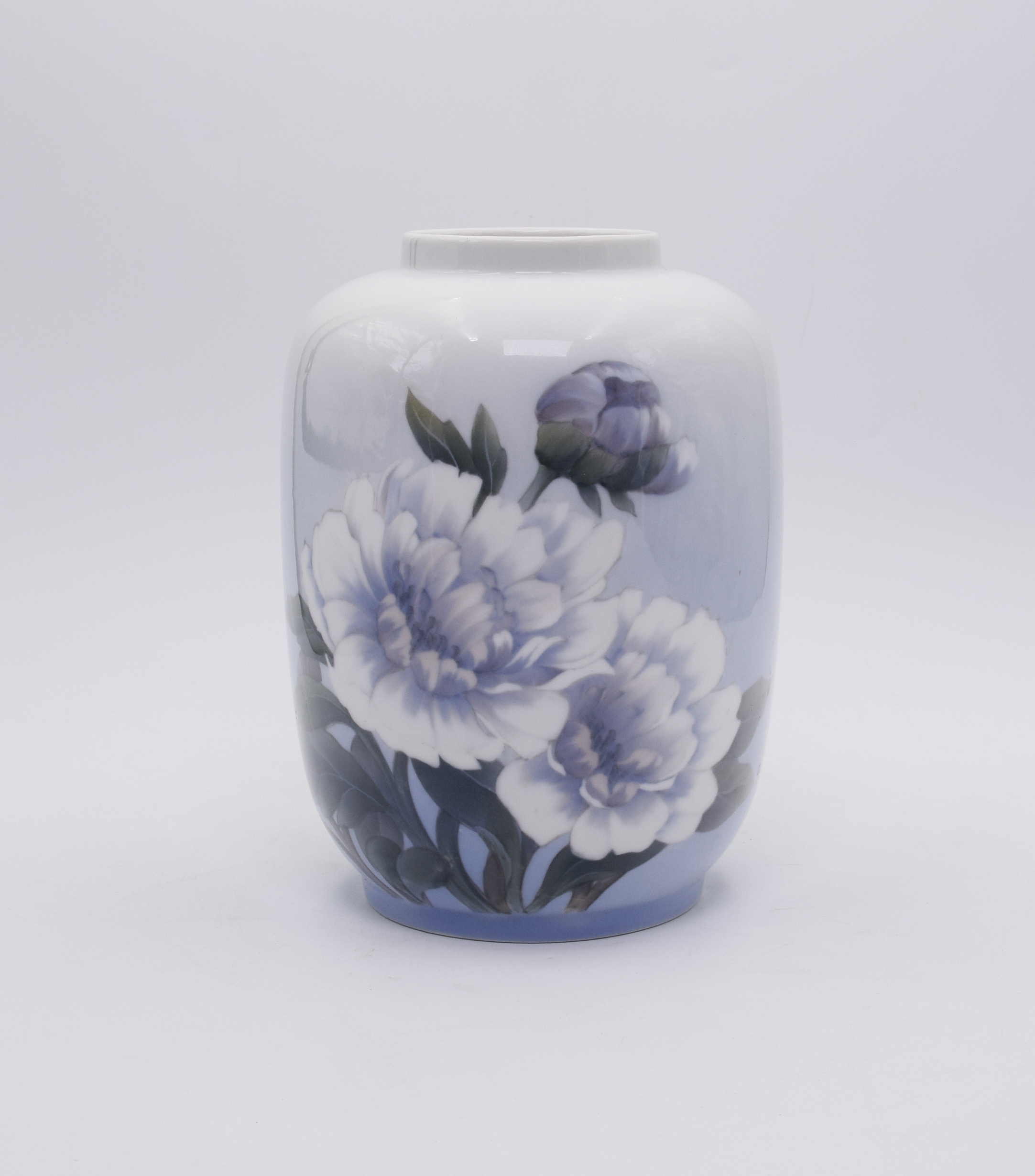 porcelana, farby podszkliwne w gamie segerowskiej (szaro - błękitnej, zielonej); wys.: 23 cm;