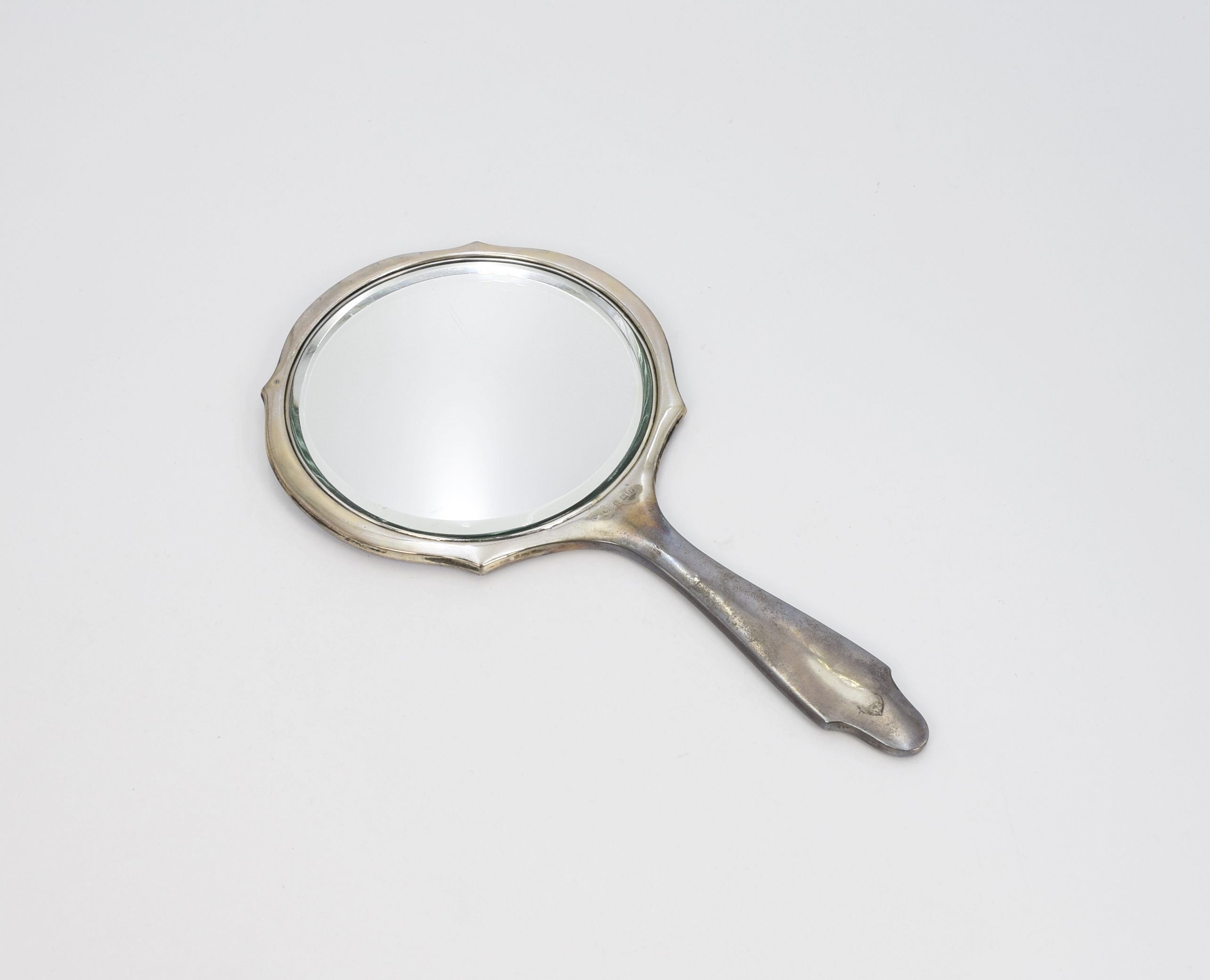 srebro pr. sterling (cechowane: znak złotnika nieczytelny, cecha miejska-kotwica, lew kroczący, litera datująca „F”), emalia jasnoniebieska rowkowa, tafla lustr