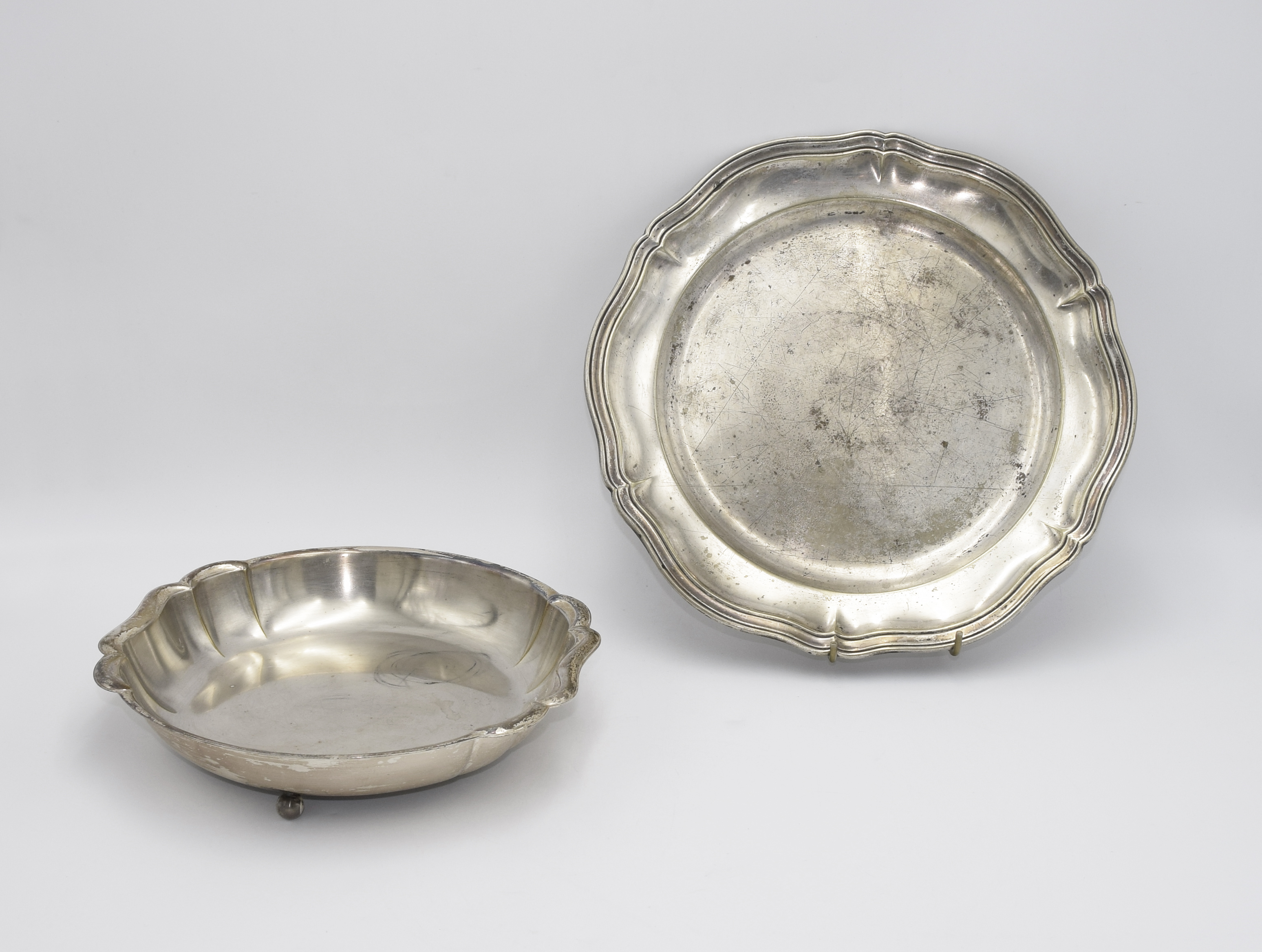 mniejszy ma oznaczenia na spodzie: "REED & BARTON / 176 / Holiday".