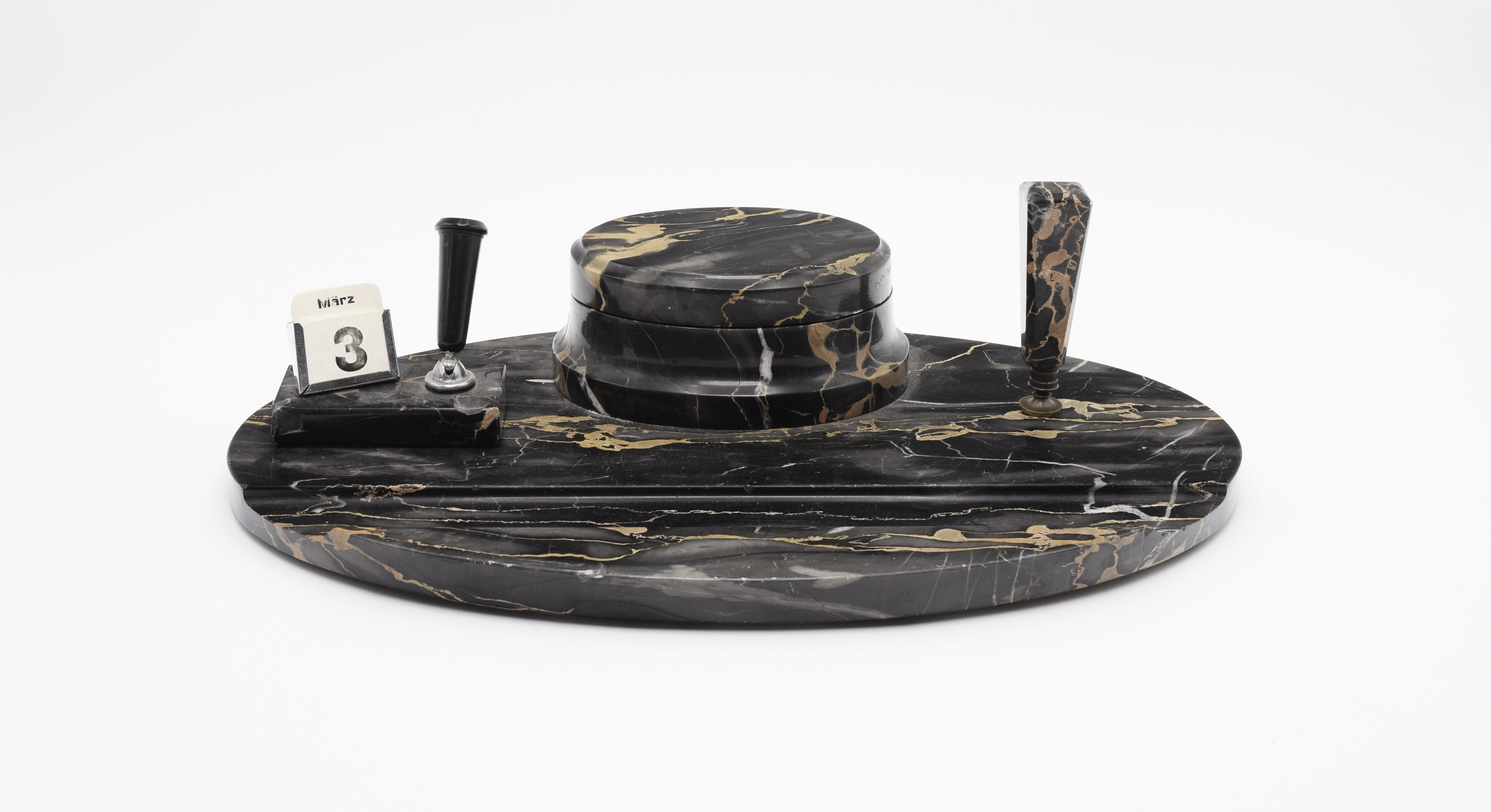 w składzie plinta z kalendarzem (niekompletnym) oraz miejscem na odstawienie pióra, tłok pieczętny (ślepy)