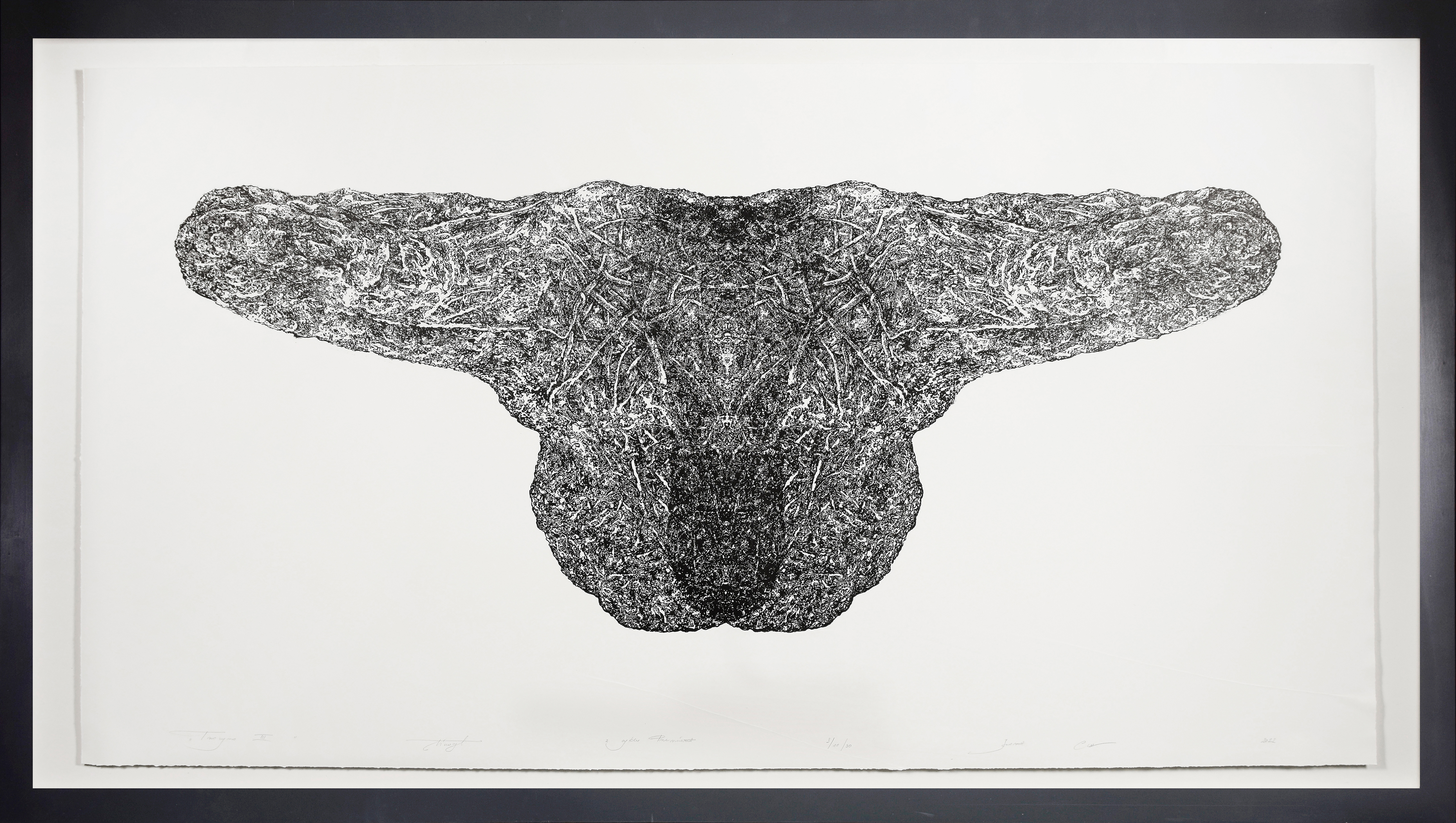 linoryt, papier (Fabriano Artistco); 74 x 150 cm (wymiar arkusza), 94 x 198 cm (wymiar z ramą)
