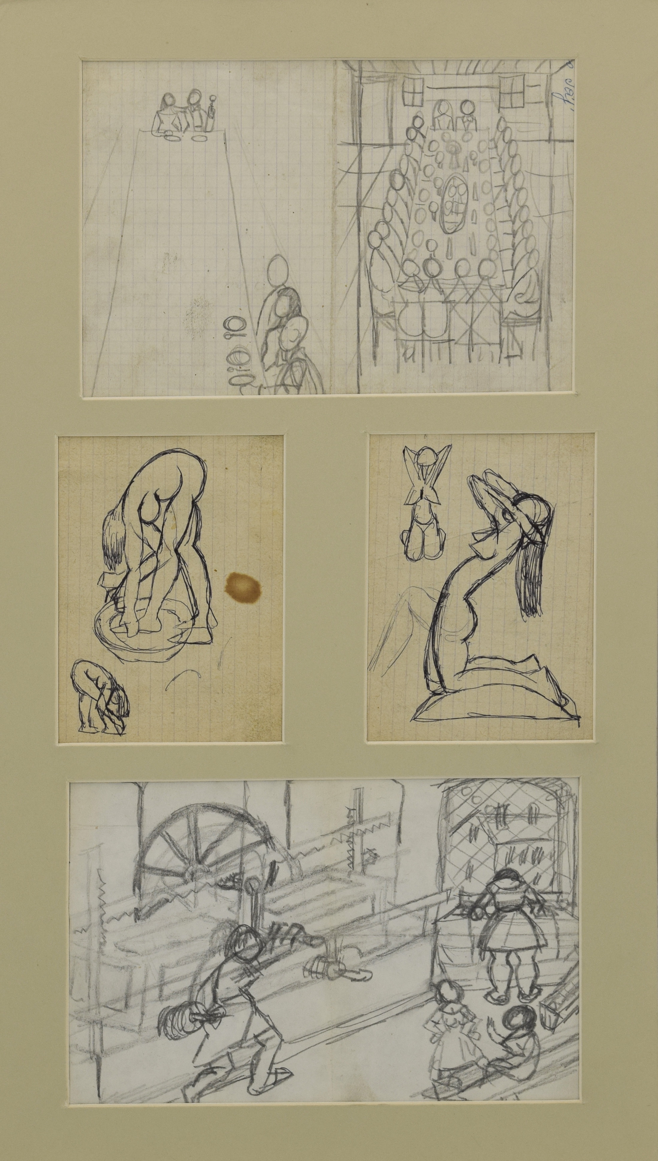 Zestaw 5 rysunków - szkice do obrazów - we wspólnej oprawie