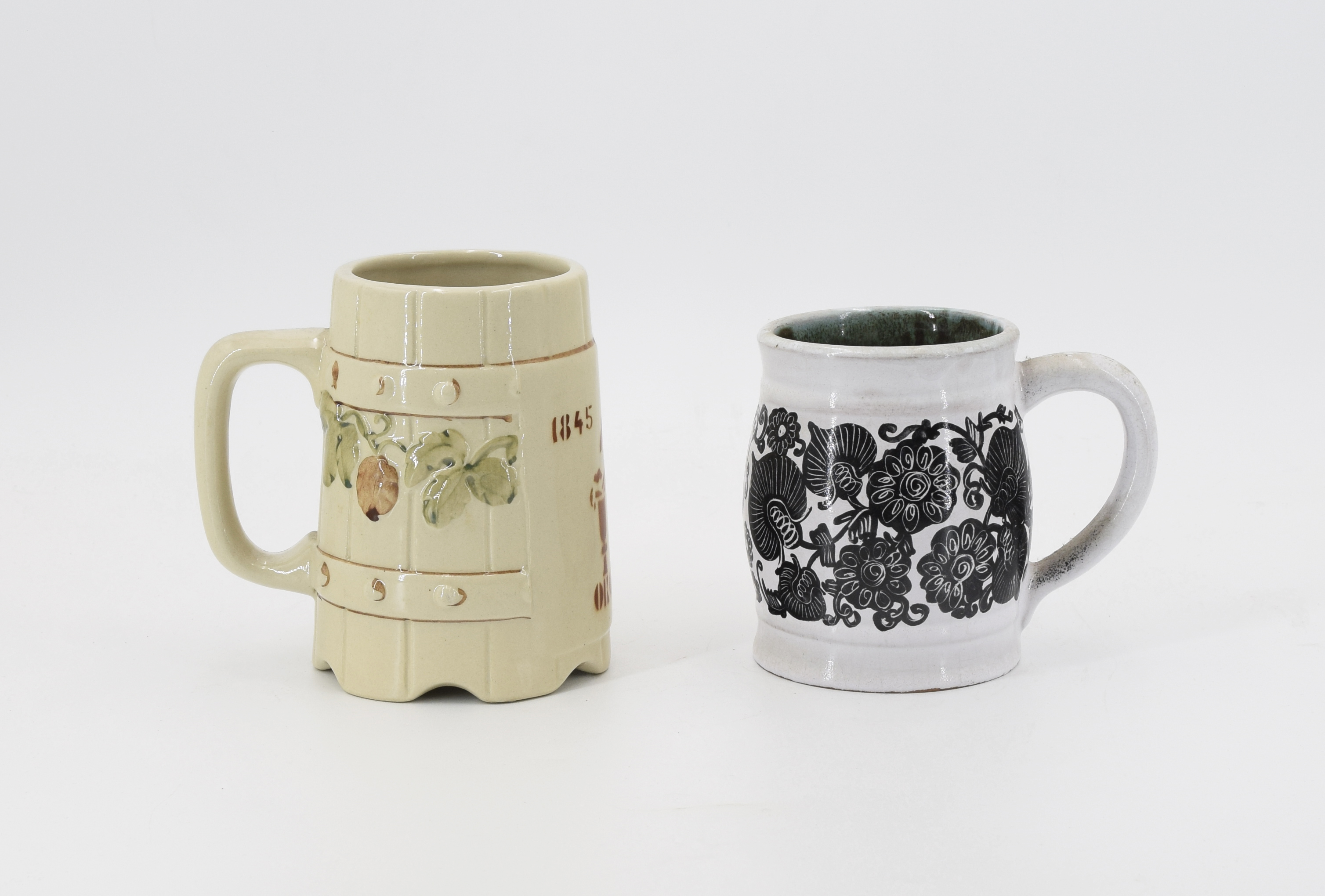 Jeden z kufli opisany na boku (szablon): 1845 / OKOCIM.