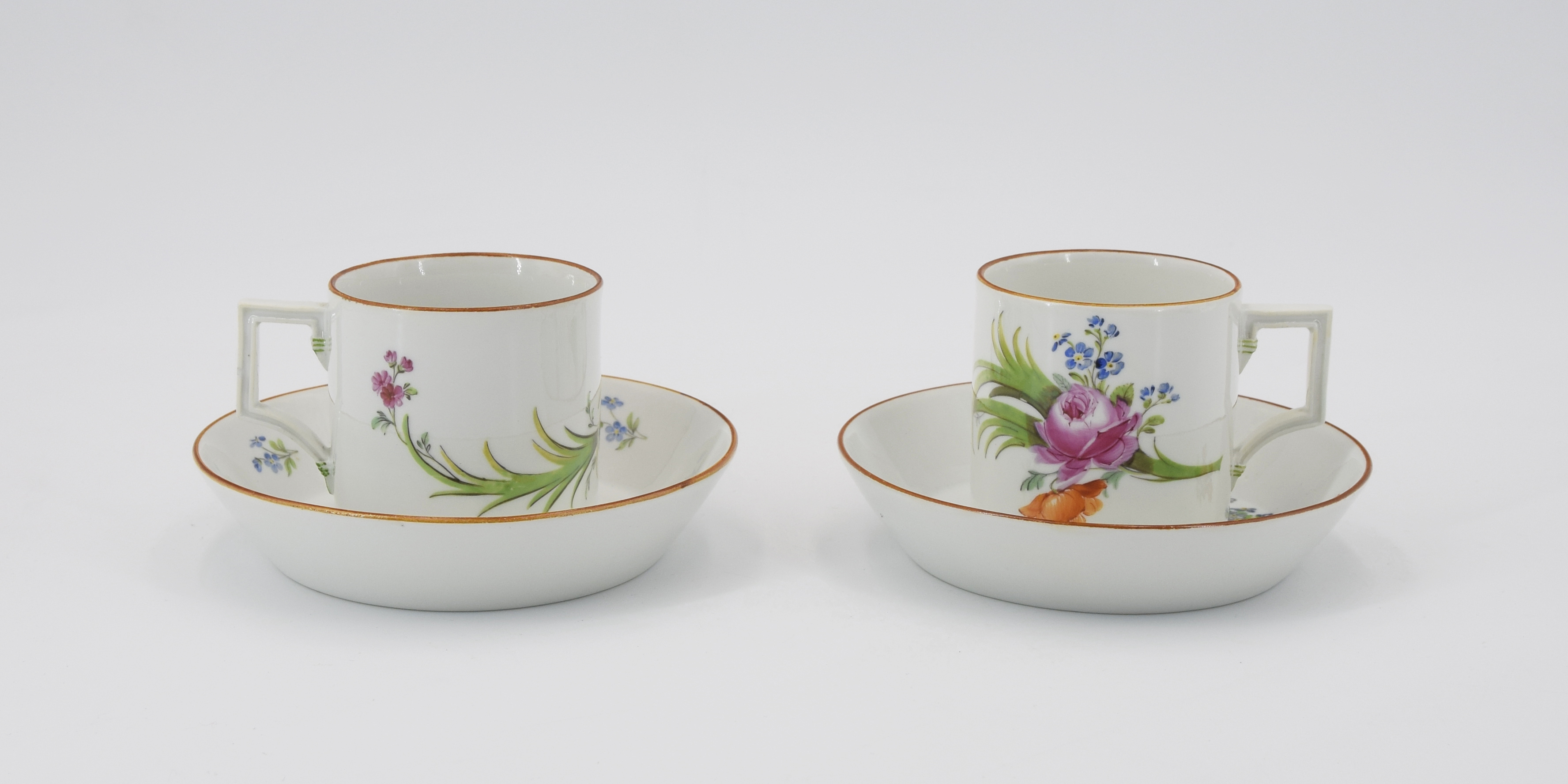 Para filiżanek ze spodkami, z dekoracją kwiatową