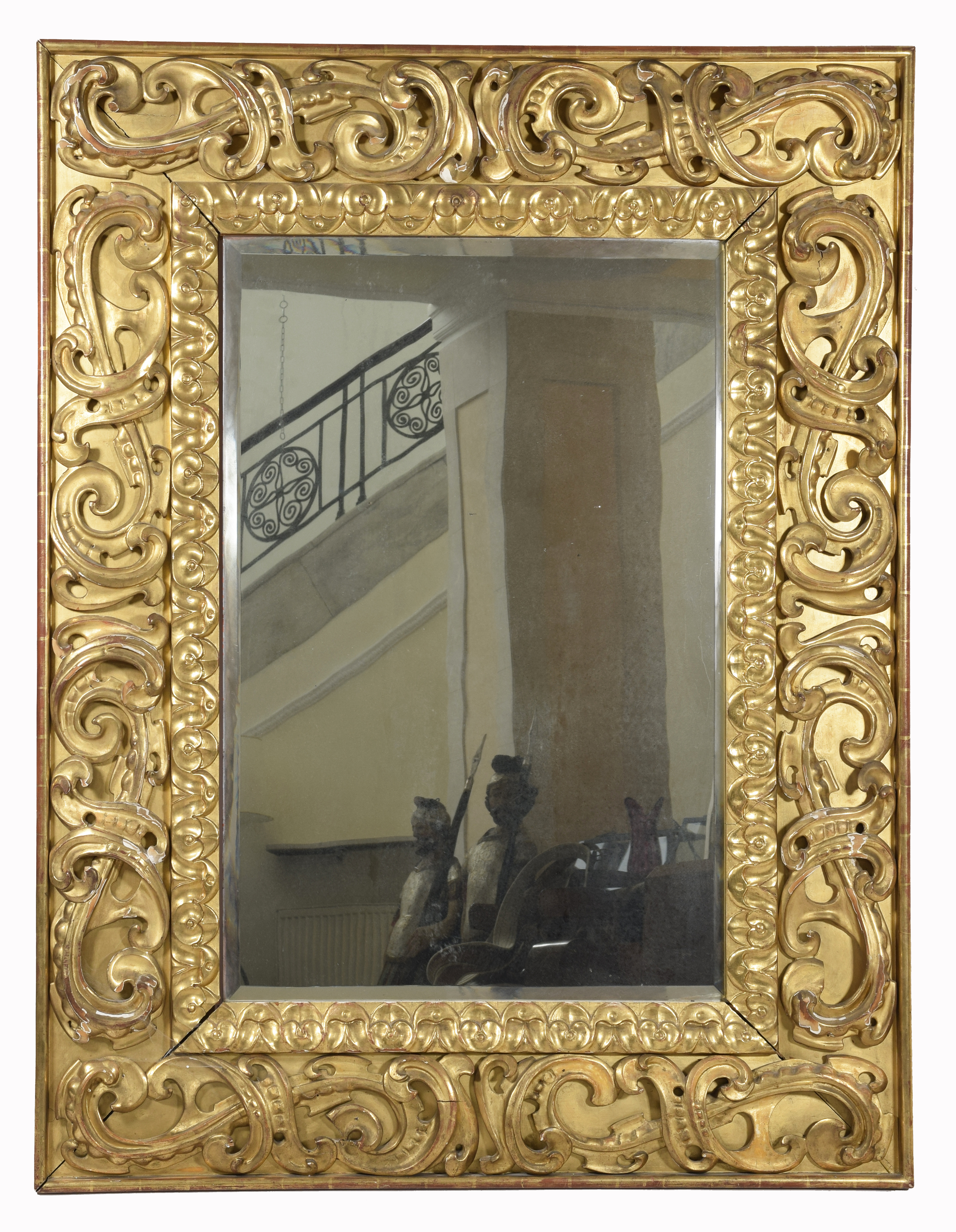 drewno, gipsatura, złocenia, tafla lustrzana; 141 x 111 cm (całość).