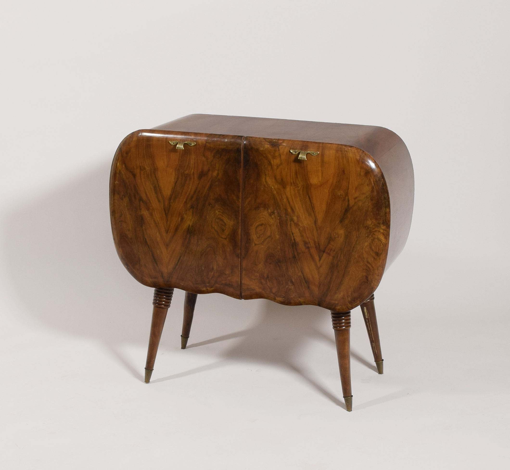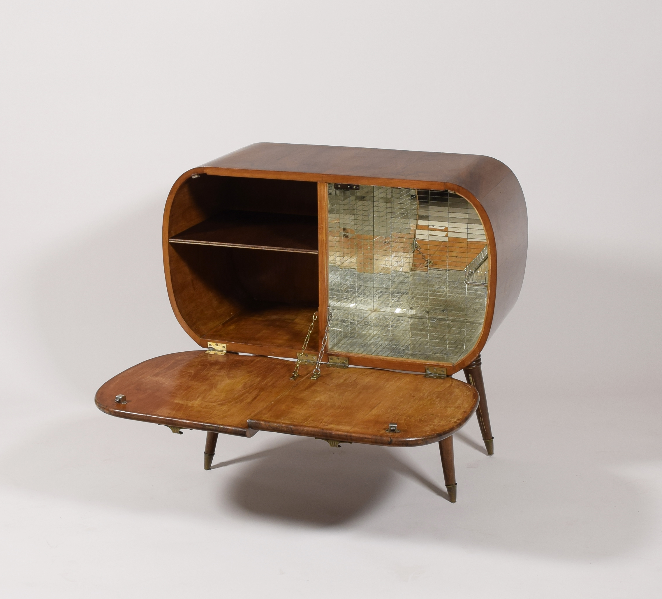 orzech, szkło, mosiądz; wys. 79 cm; szer. 83 cm; gęb. 39 cm;