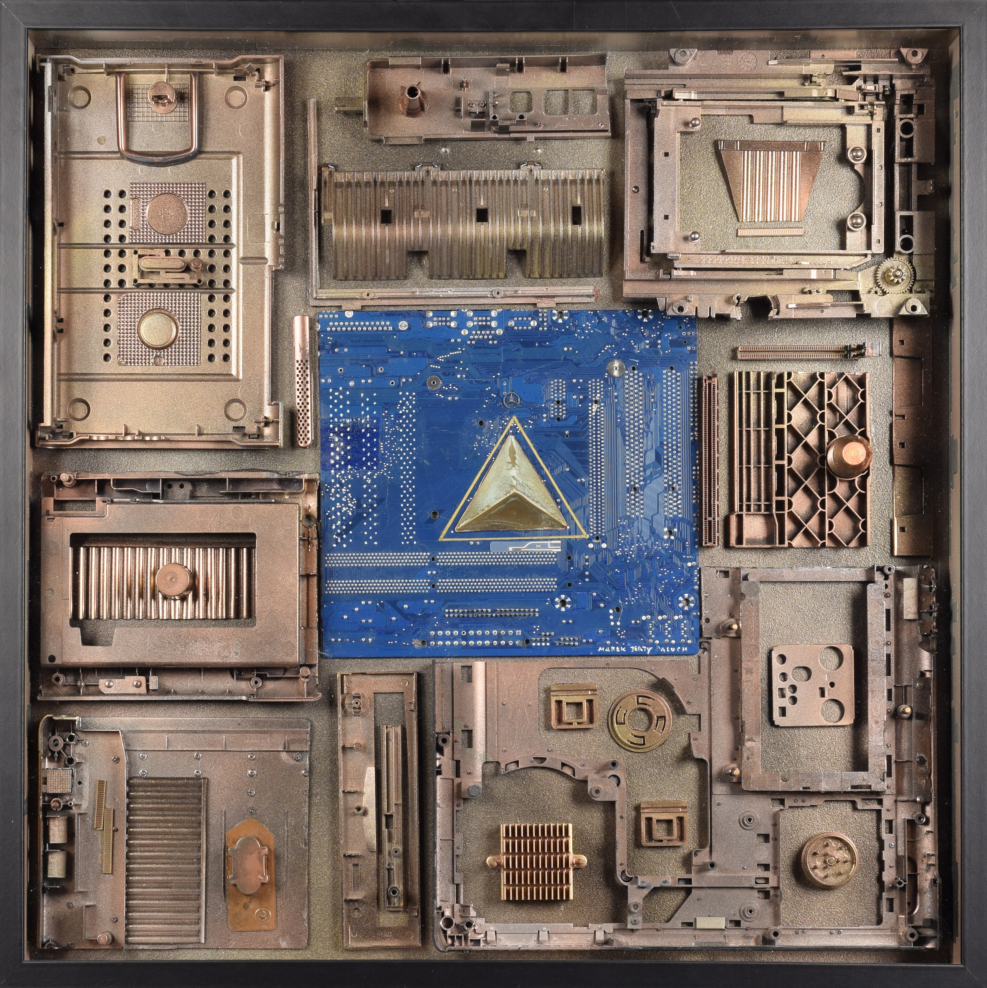na odwrocie opis autorski: MAREK JERZY PALUCH / "S.P. - XCII" 2025. / MIXMEDIUM / 50x50x6 cm.