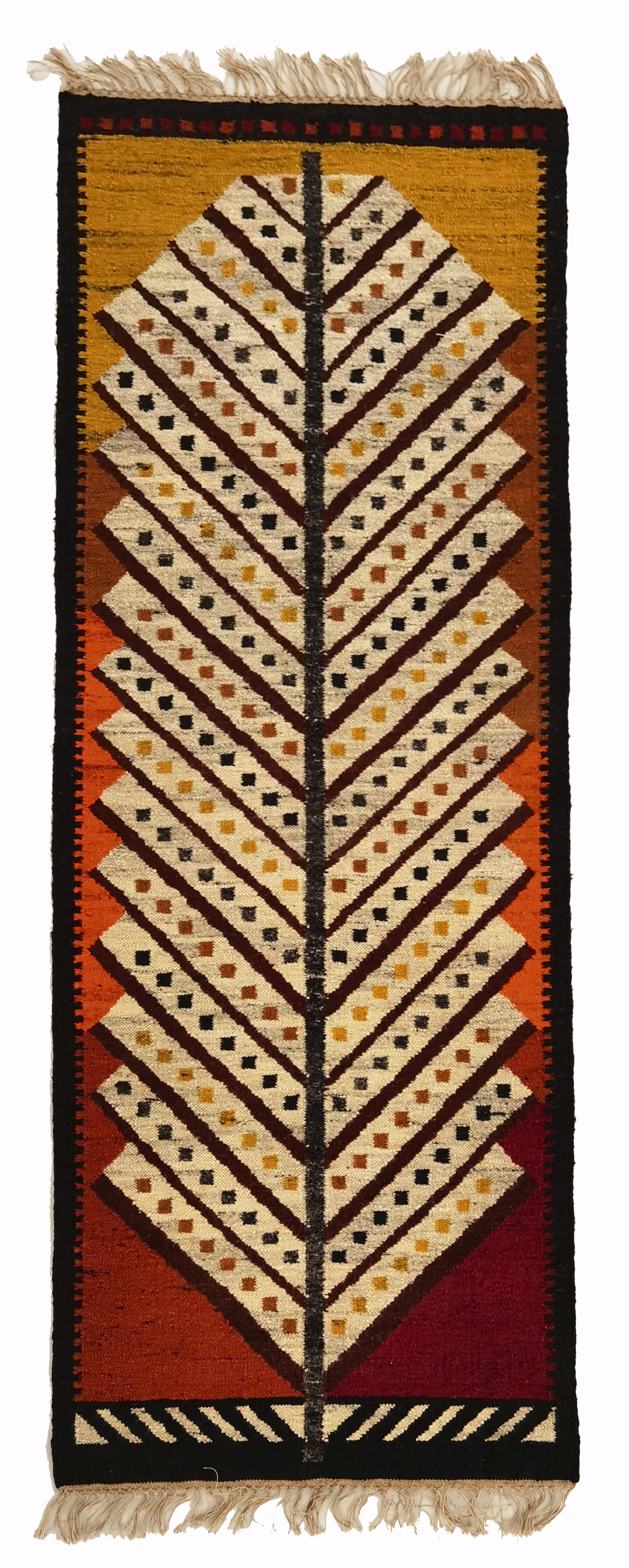 osnowa lniana, wełna barwna, wymiary: 204 x 76 cm;