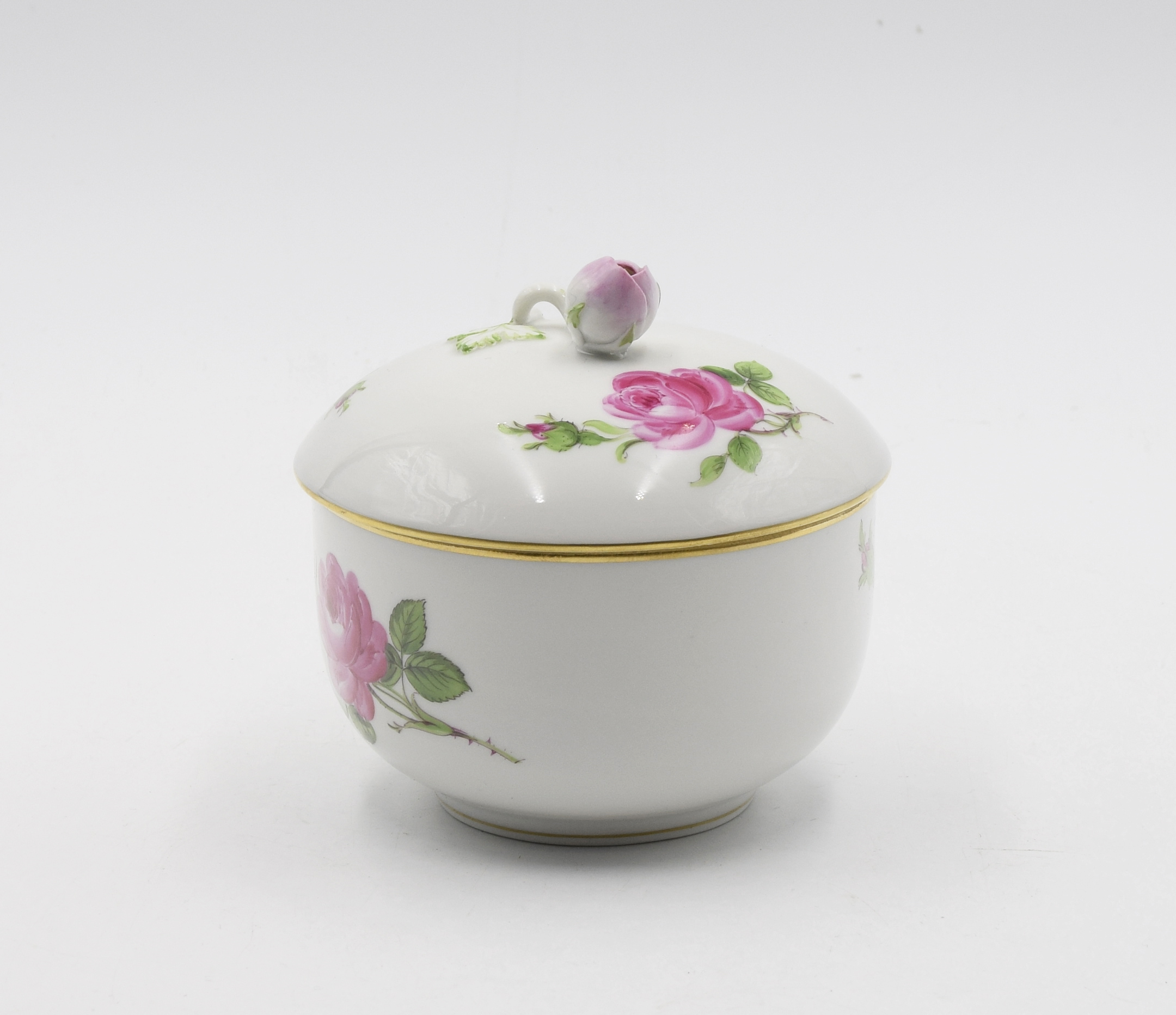 porcelana, farby naszkliwne, złocenia; wys. ok.10 cm, średn.10 cm;