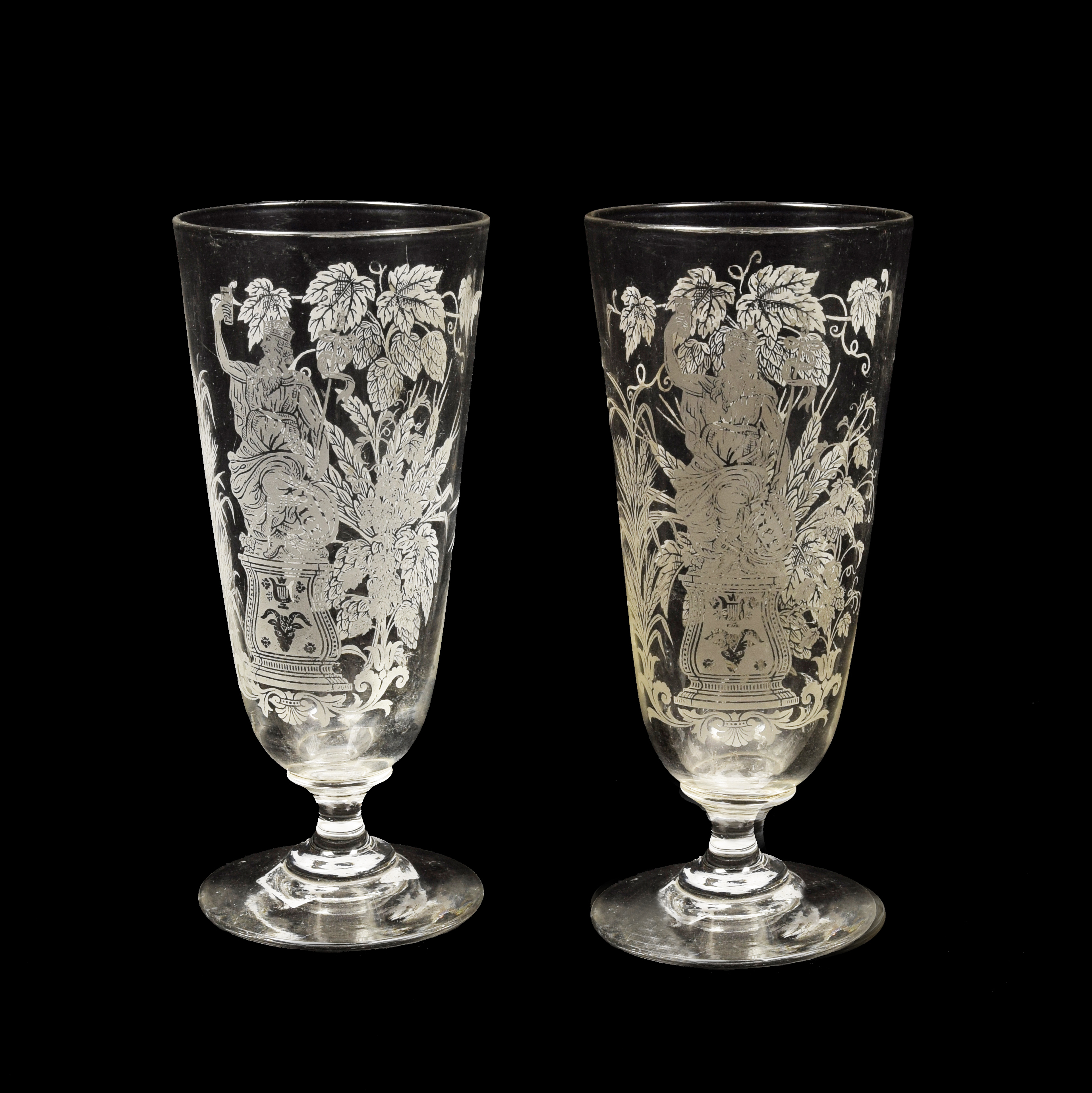 zdobionych trawionymi wizerunkami monarchy z kielichem, bukietami chmielu