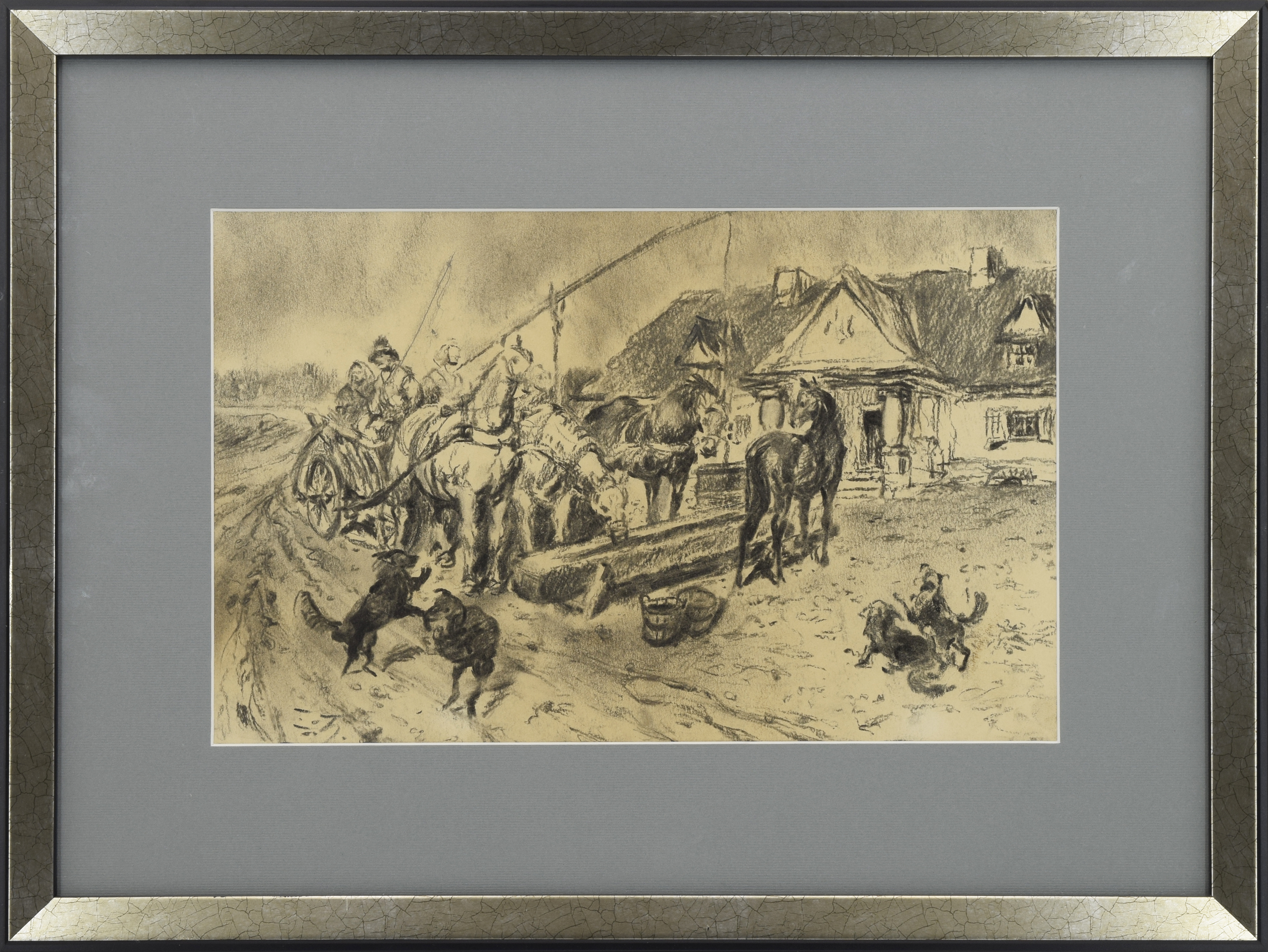 węgiel, papier; 20 x 31,5 cm (w świetle oprawy);