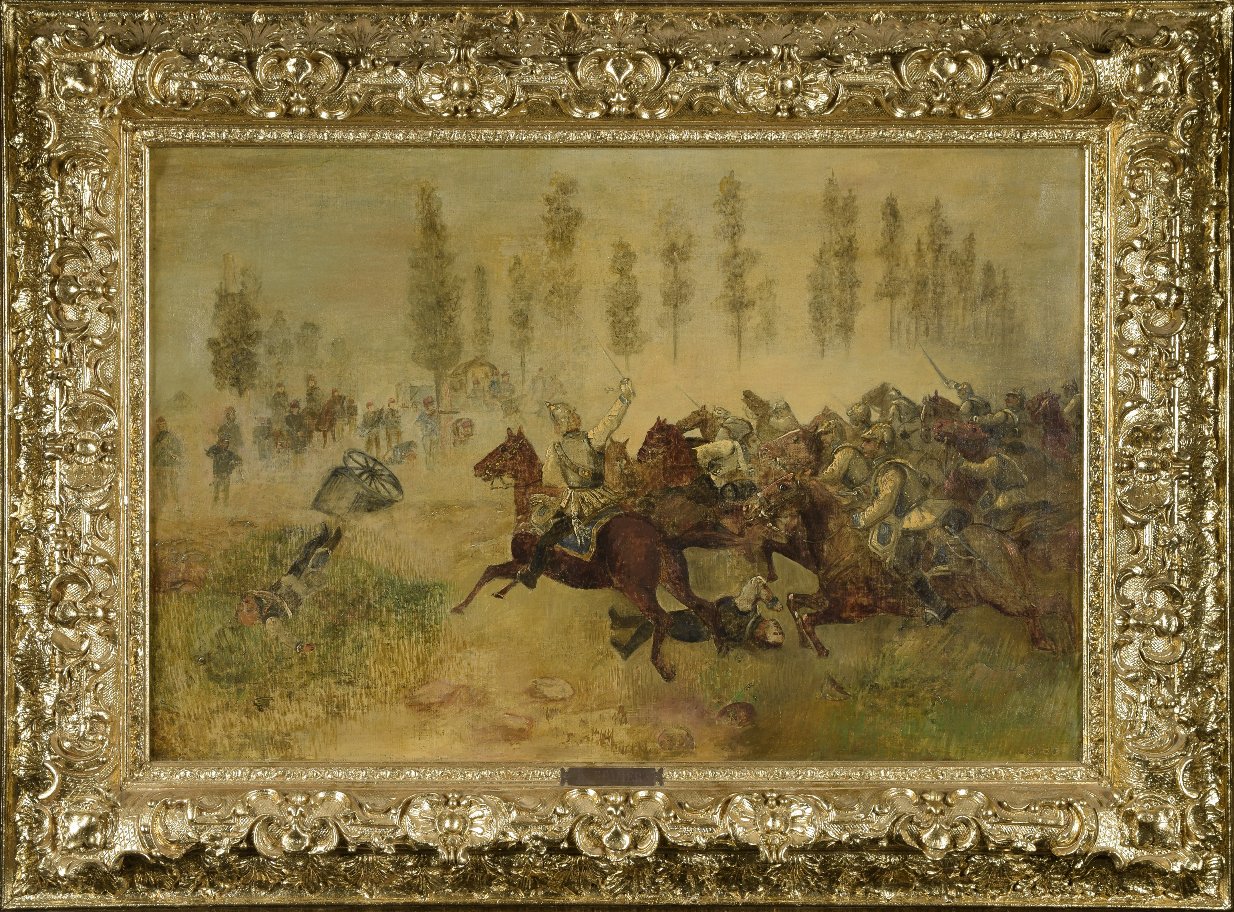 Stan zachowania: obraz po konserwacji, łaty widoczne na odwrocie, przetarcia malatury.