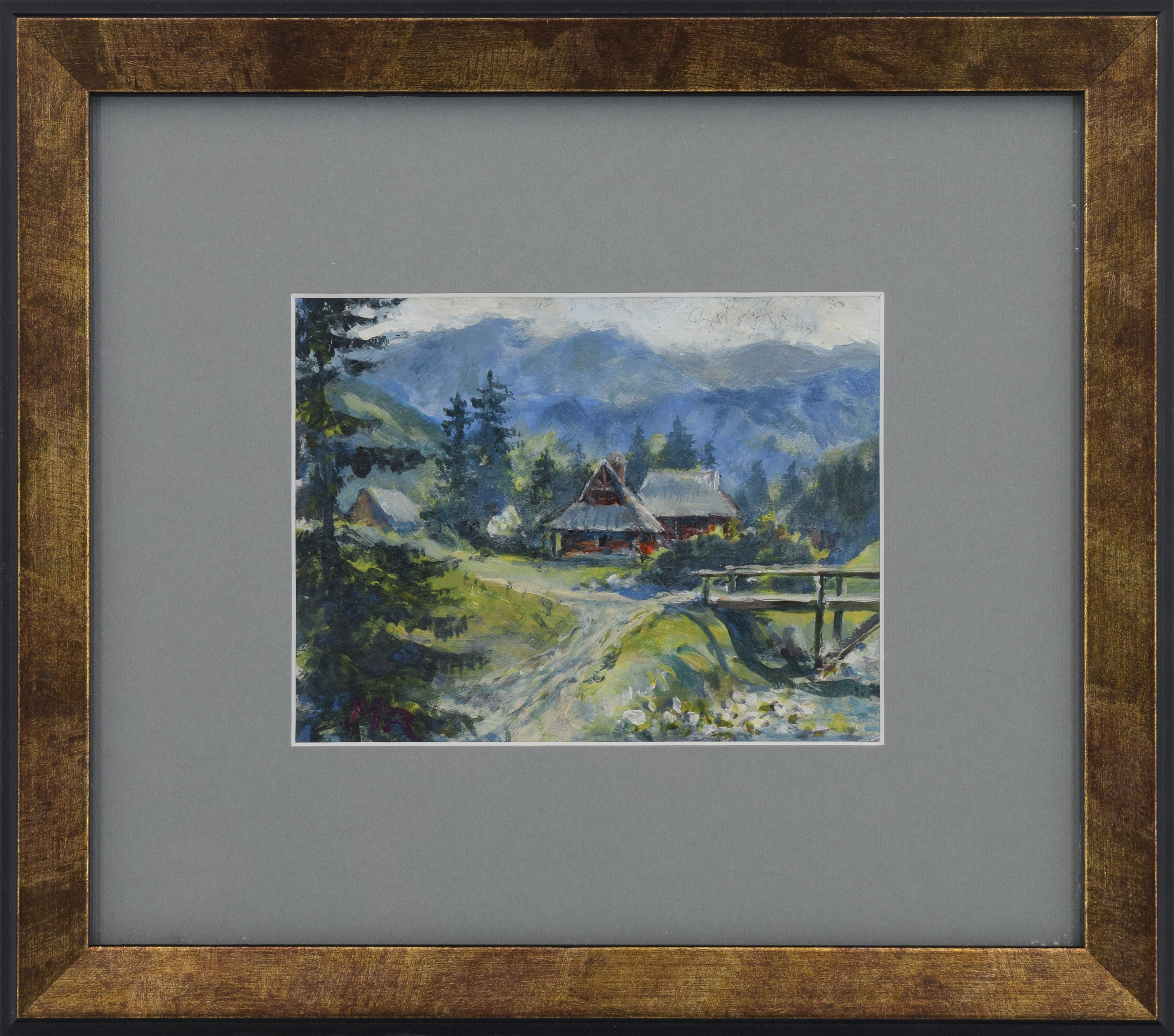 1. Pejzaż z chatami o strumykiem