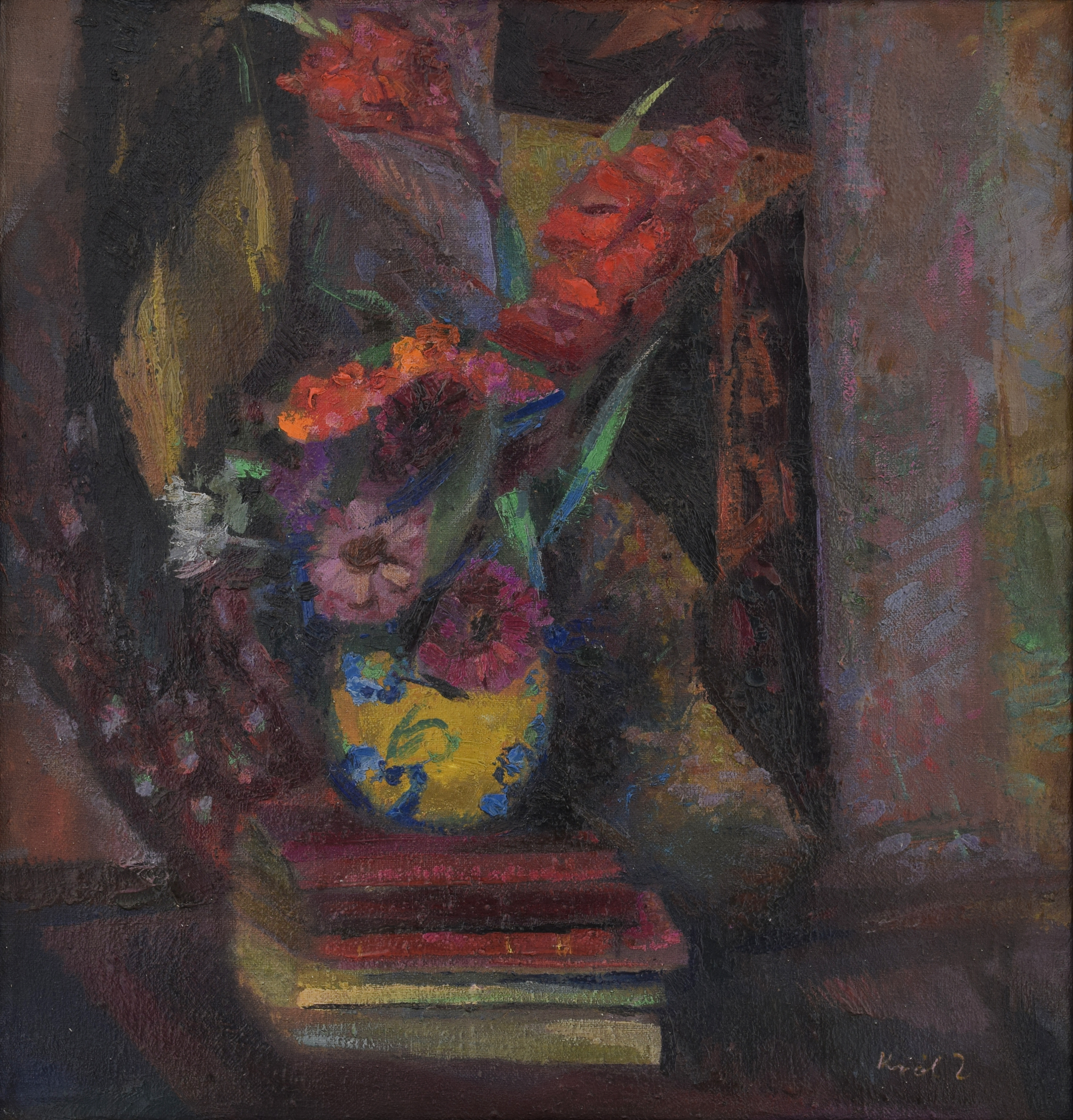 Martwa natura z książkami i kwiatami