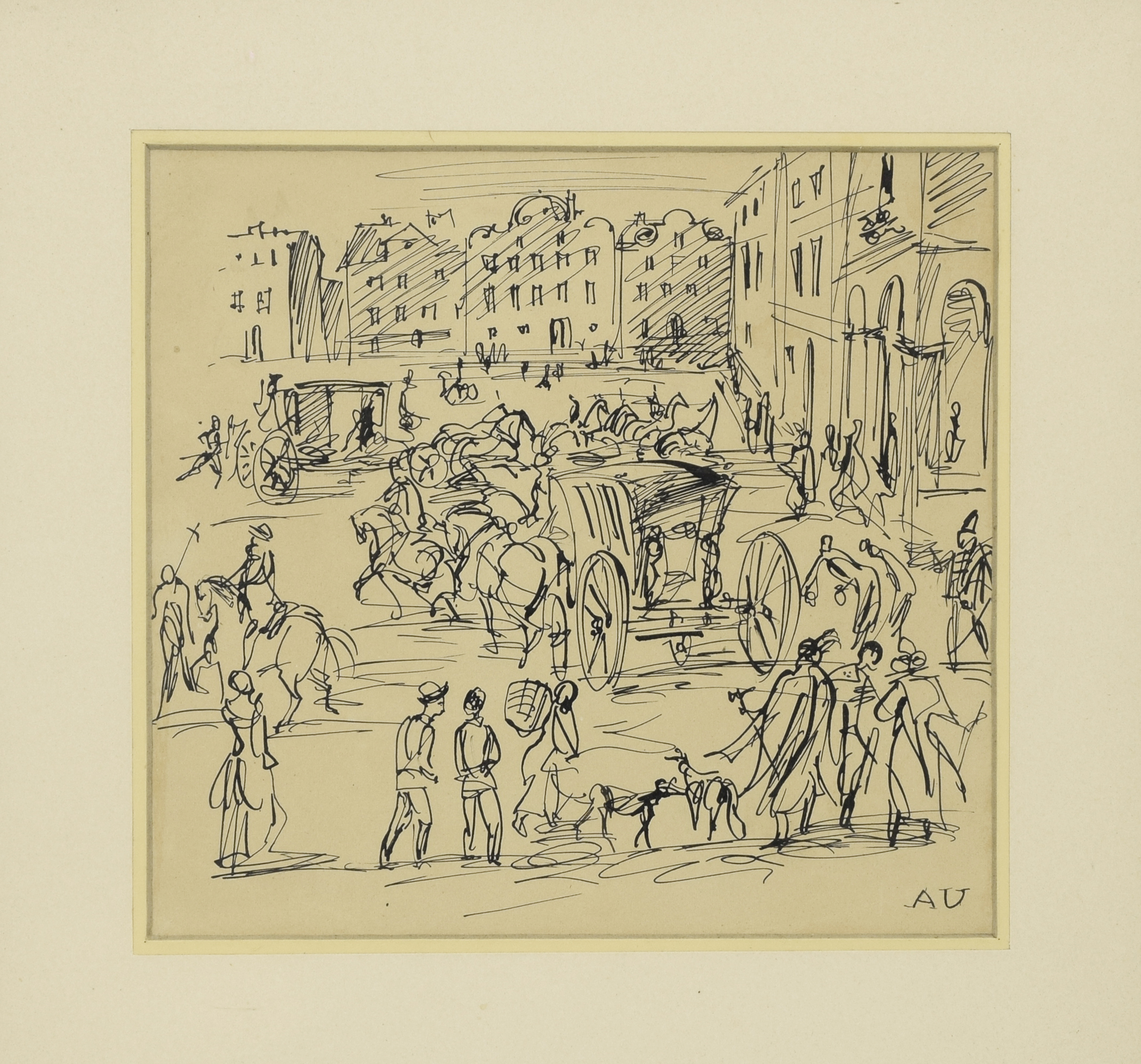 piórko, tusz, papier; 18,7 x 20 cm (w świetle passe-partout);