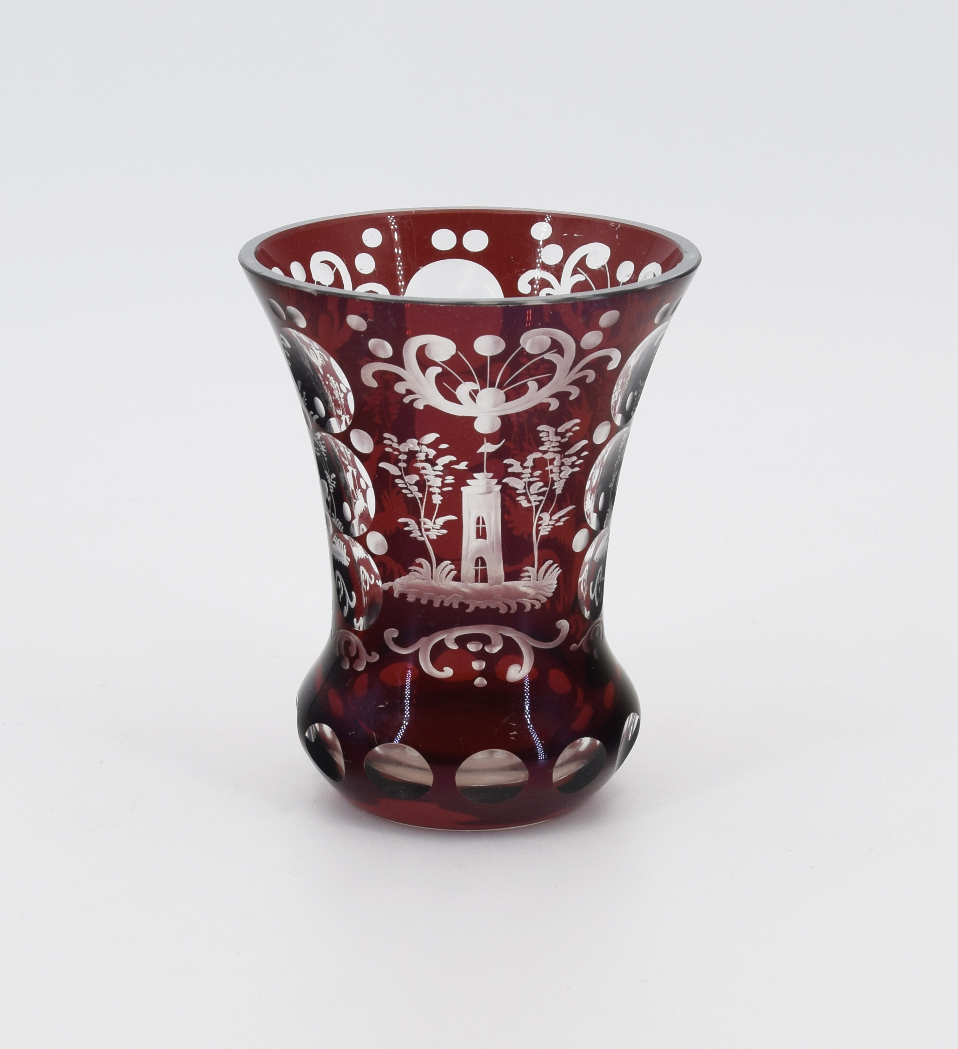 szkło warstwowe, przezroczyste, powlekane rubinowym, szlifowane; wys. 12,5 cm;