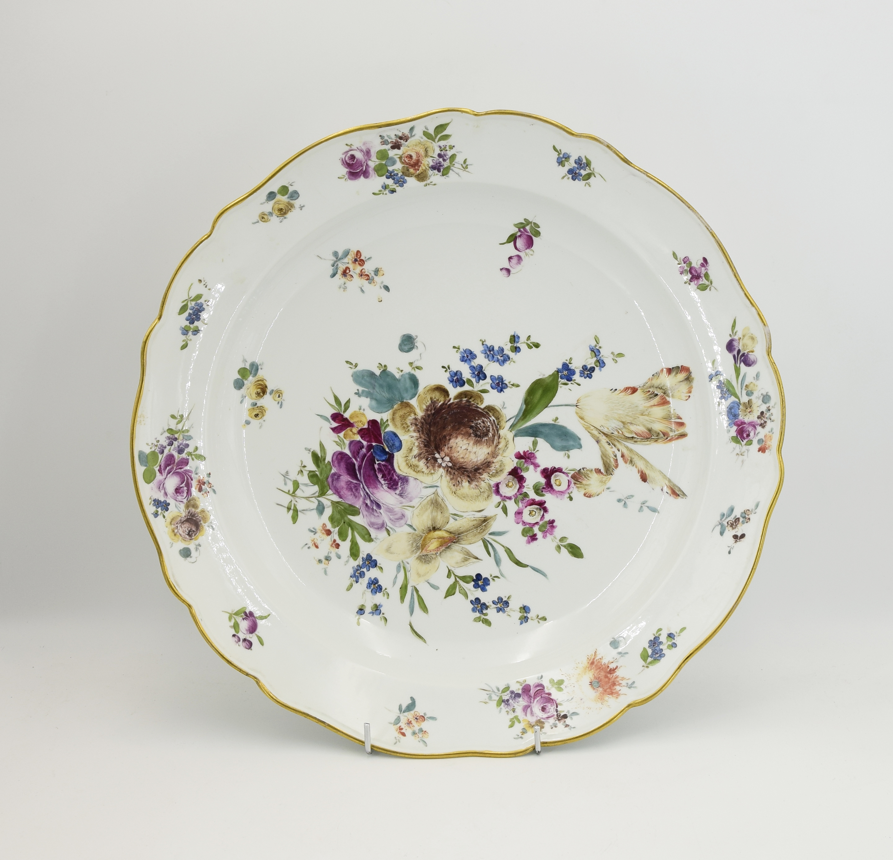porcelana, farby naszkliwne, złocenia; wys. 7,8 cm, średn. 43 cm;