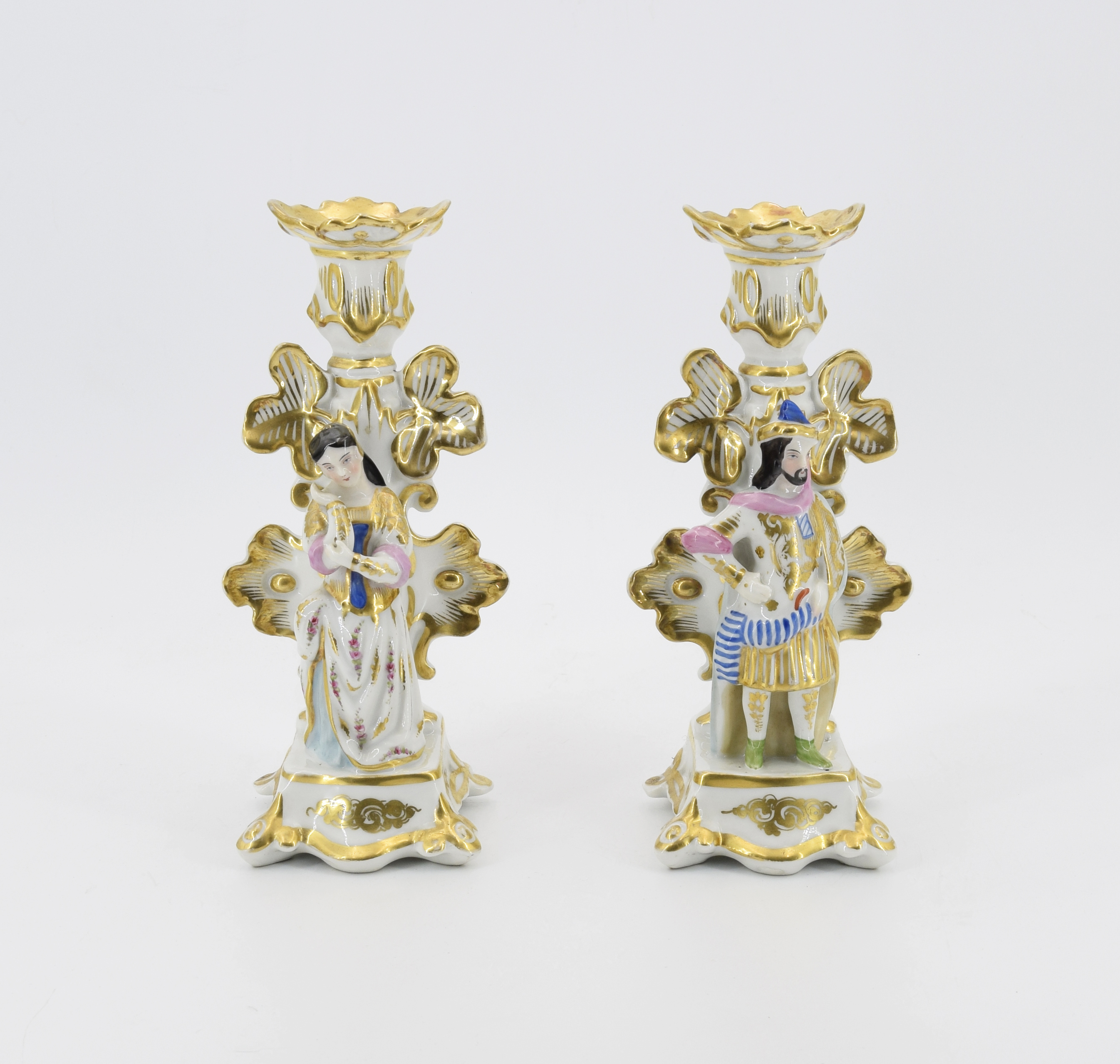 Para lichtarzy z postaciami w strojach orientalizujących
